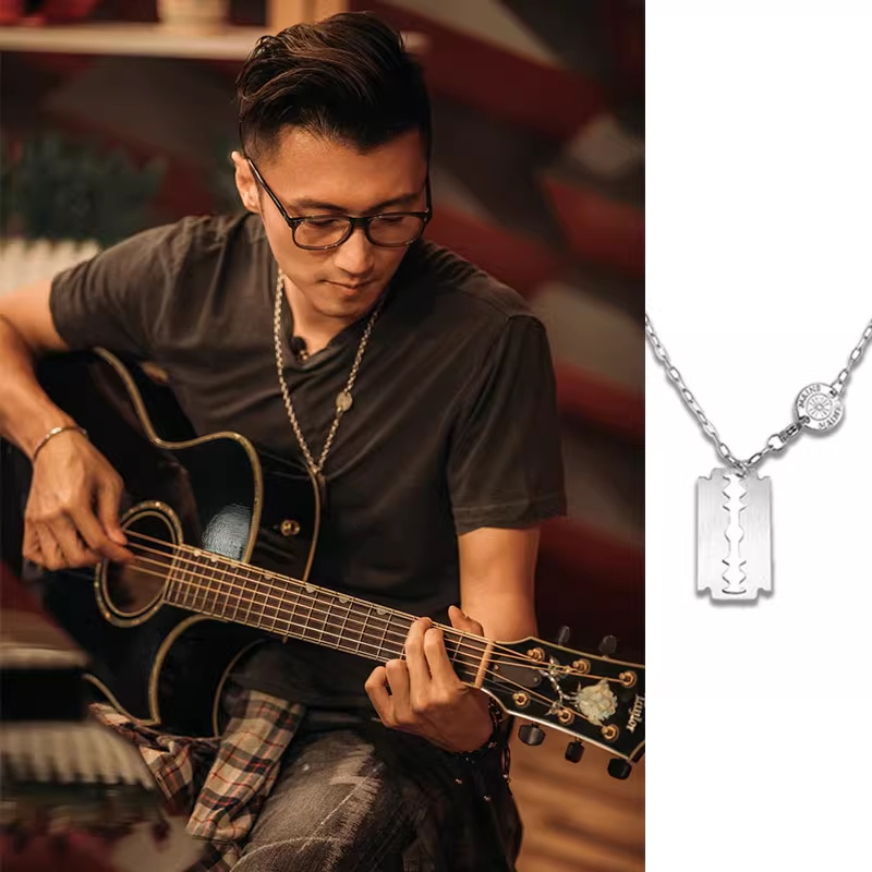 中国好声音谢霆锋同款圆牌刀片项链毛衣长款钛钢不掉色中国风饰品