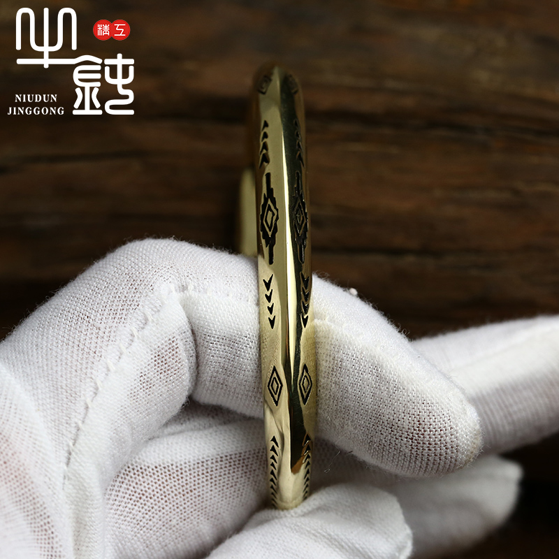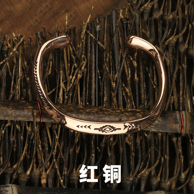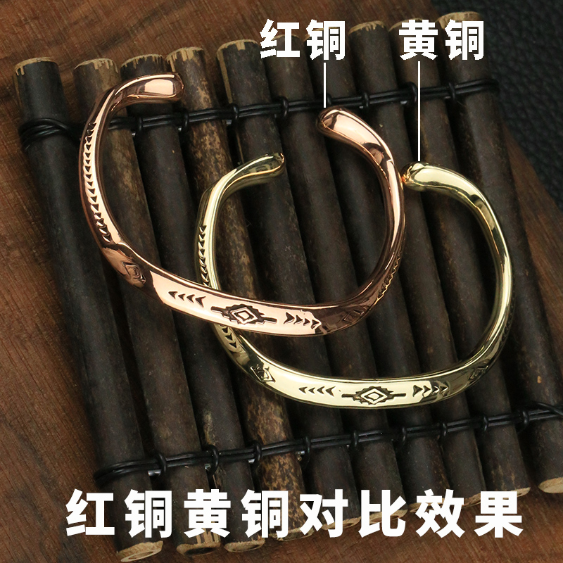 牛钝精工 纳瓦霍手镯纯手工錾刻压纹印第安风格开口纯铜手镯 男女