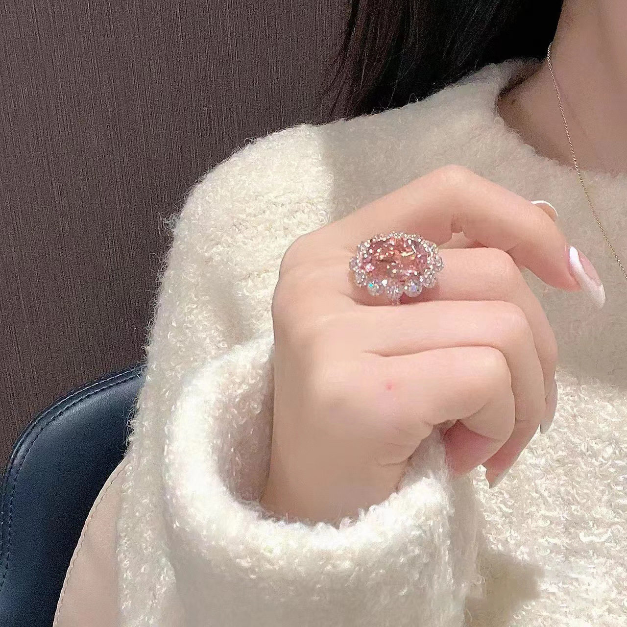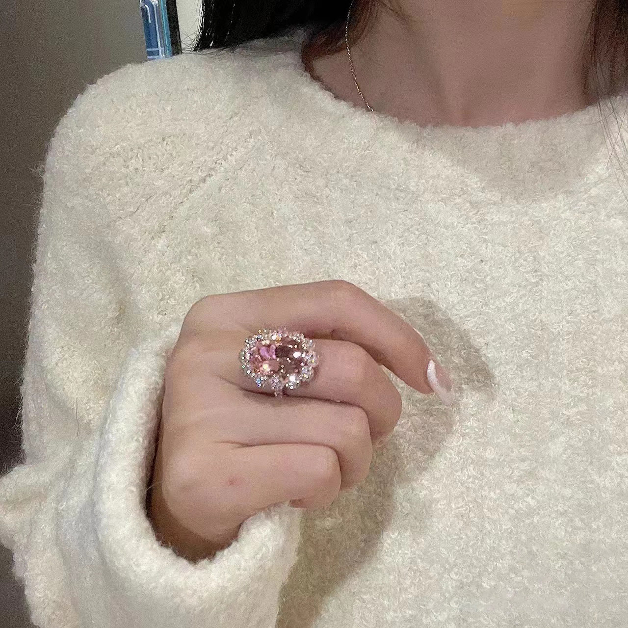 复古设计小众高级感轻奢高碳粉钻切开口指环新款潮戒指女时尚百搭