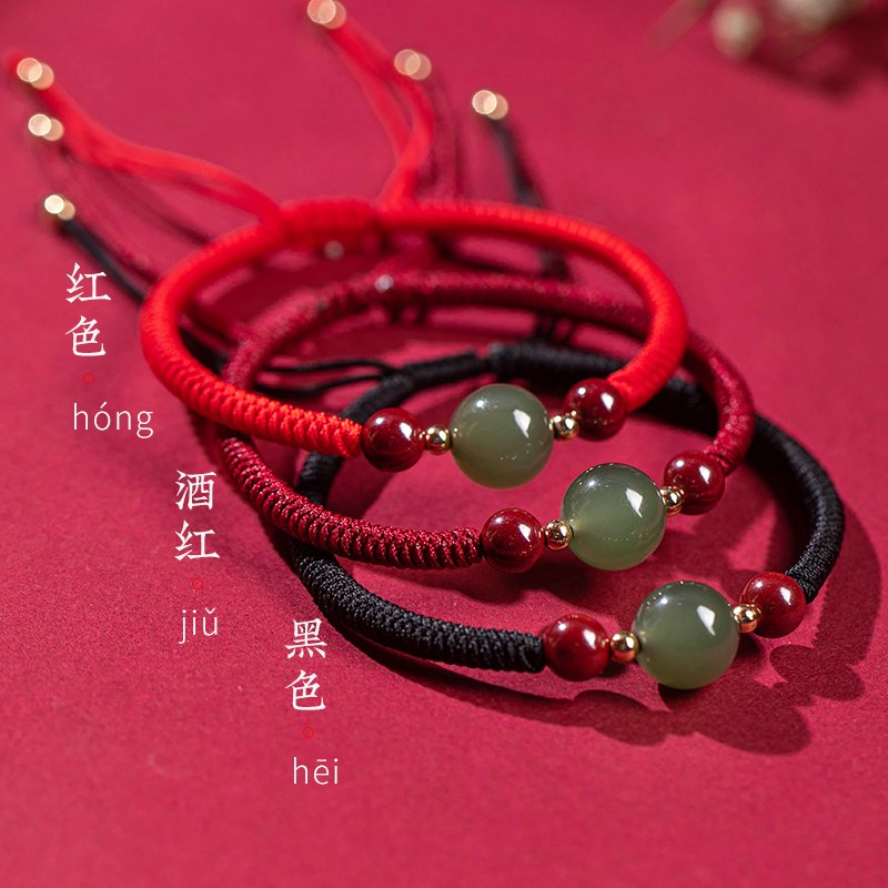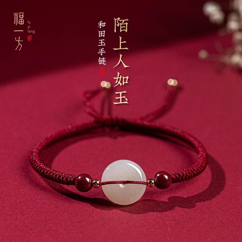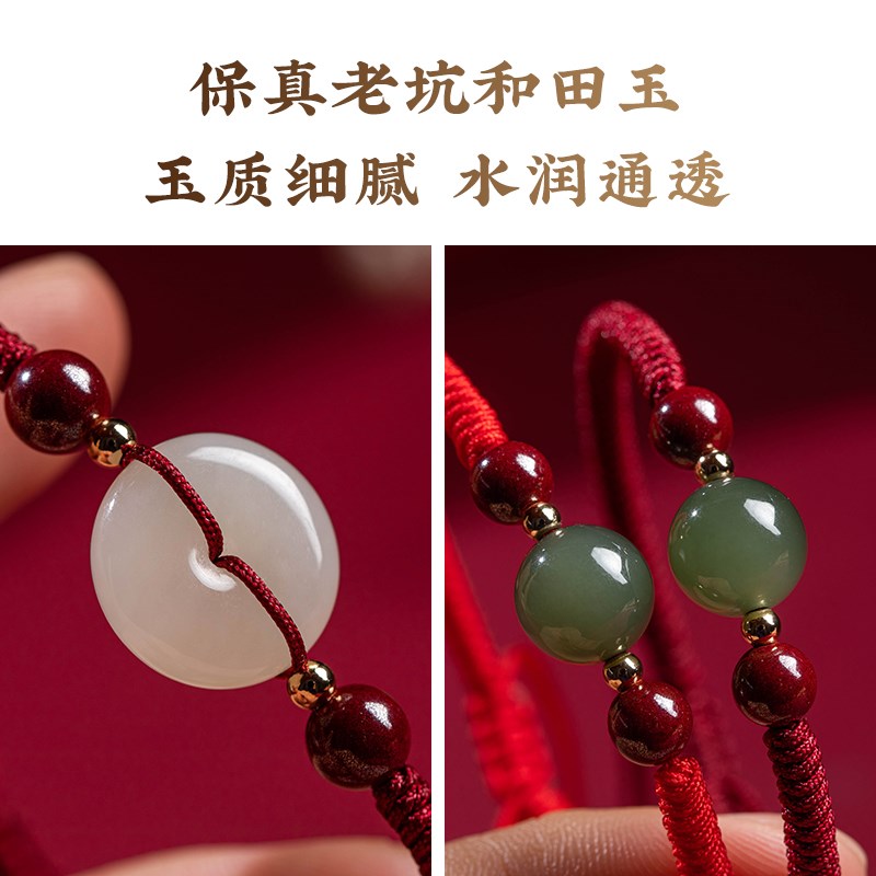 现货速发朱砂和田玉平安扣手绳红绳手链可调节透亮百搭男礼物中国