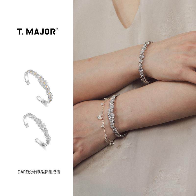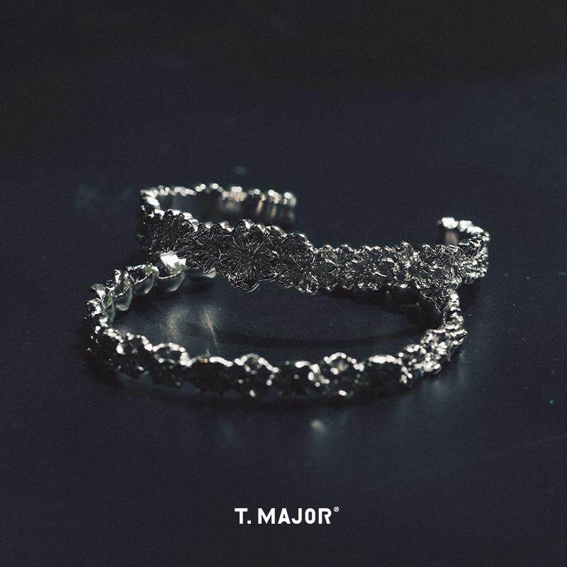 Dare买手店 T.MAJOR簇拥四照花拼接环绕手镯纯银暗黑花朵中式手环