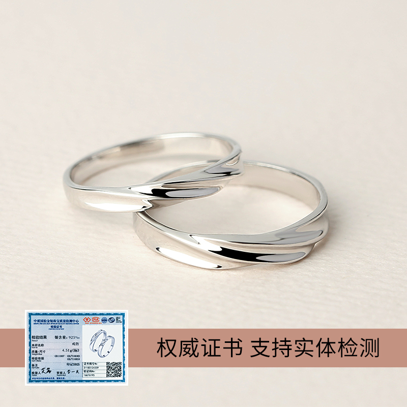轻奢情侣对戒999纯银镀金戒指一对素圈戒子小众设计高级感礼物