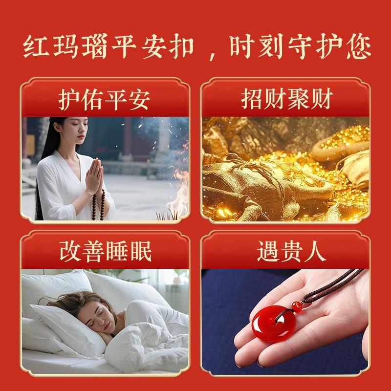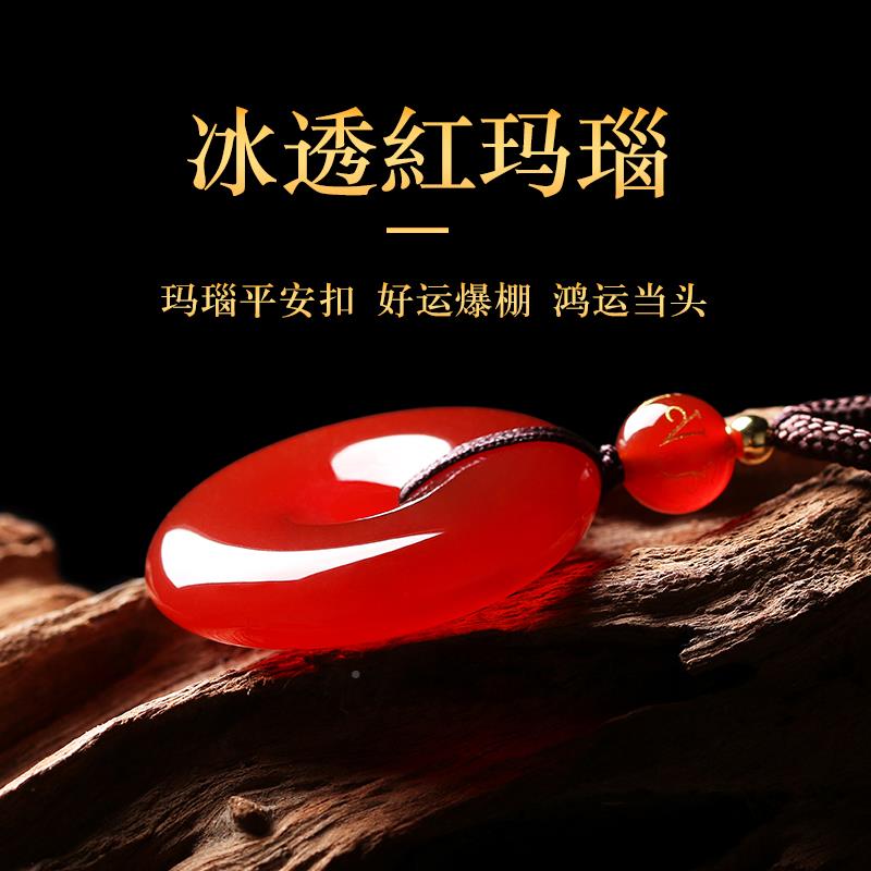 天然红玛瑙平安款扣项链红玛瑙吊吊坠晶女男士挂件红色玉石水挂坠