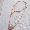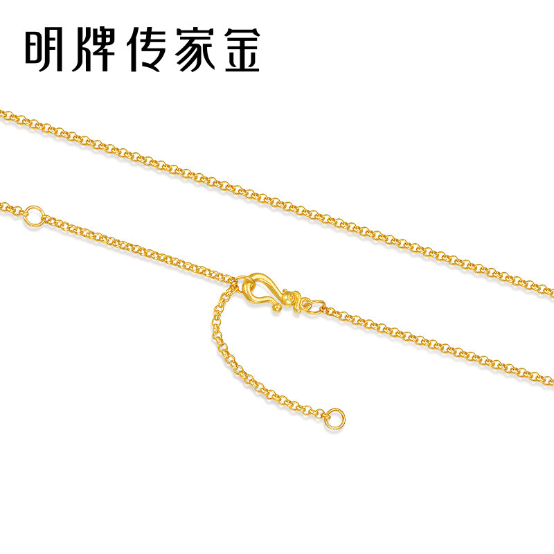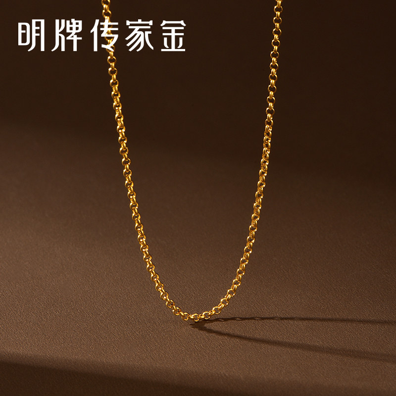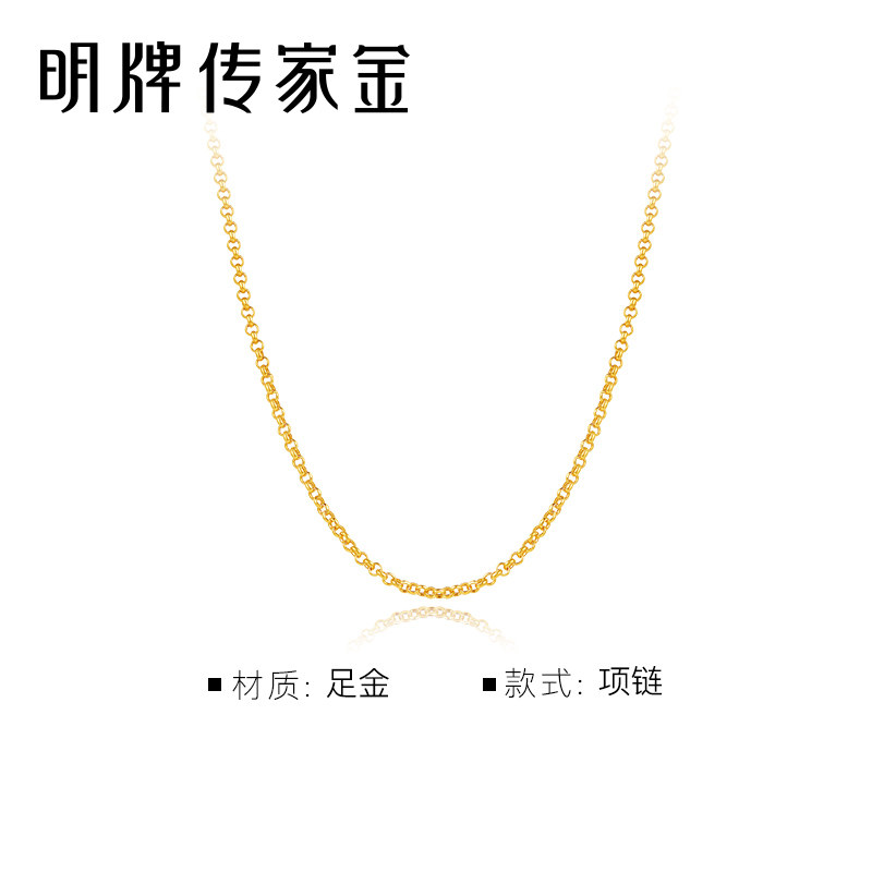 明牌珠宝古法黄金项链 古法珍珠链足金女素链礼物首饰AFR0065