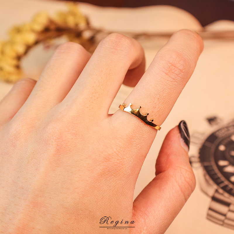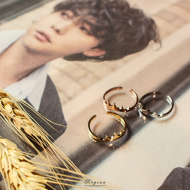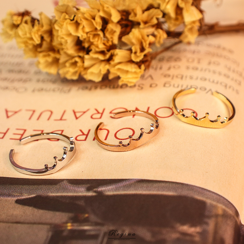 Regina原创欧美气质简约时尚小众设计开口可调节大小镀金王冠戒指