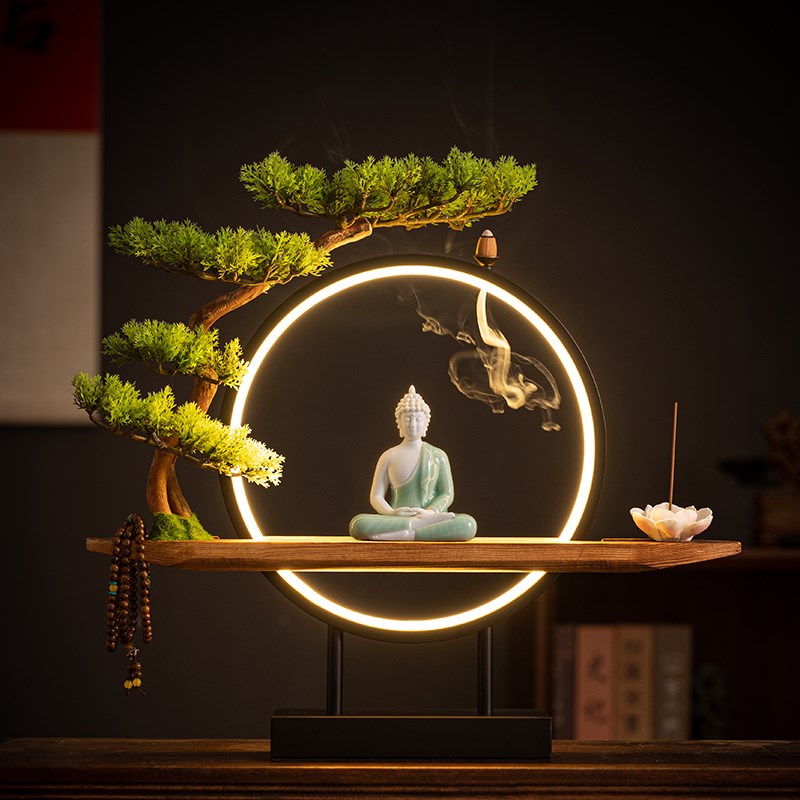 新中式禅意陶瓷大日如来佛摆件家居客厅玄关桌面软装饰品创意灯圈