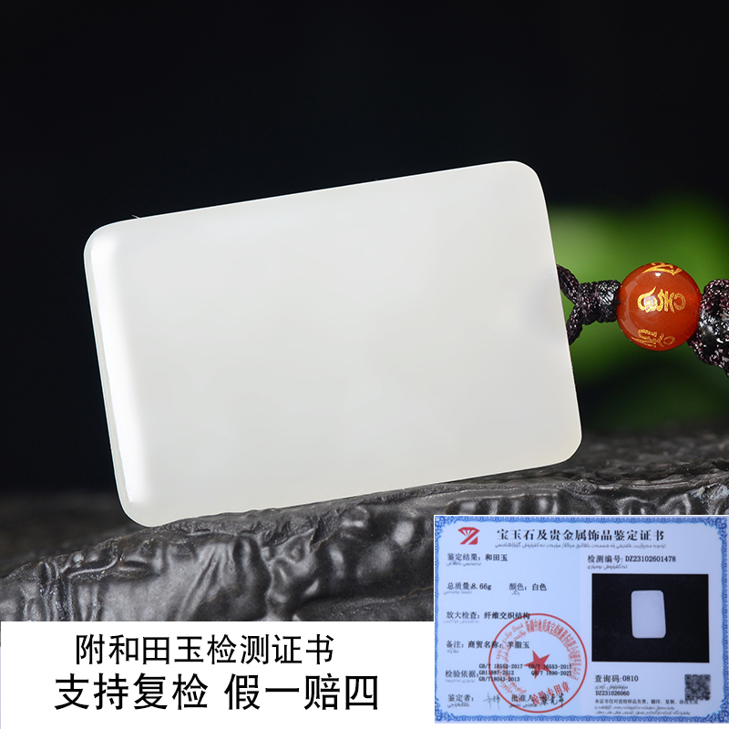 珪宝和田玉羊脂白玉无事牌吊坠男士玉坠玉佩挂件女款宝宝款玉项链