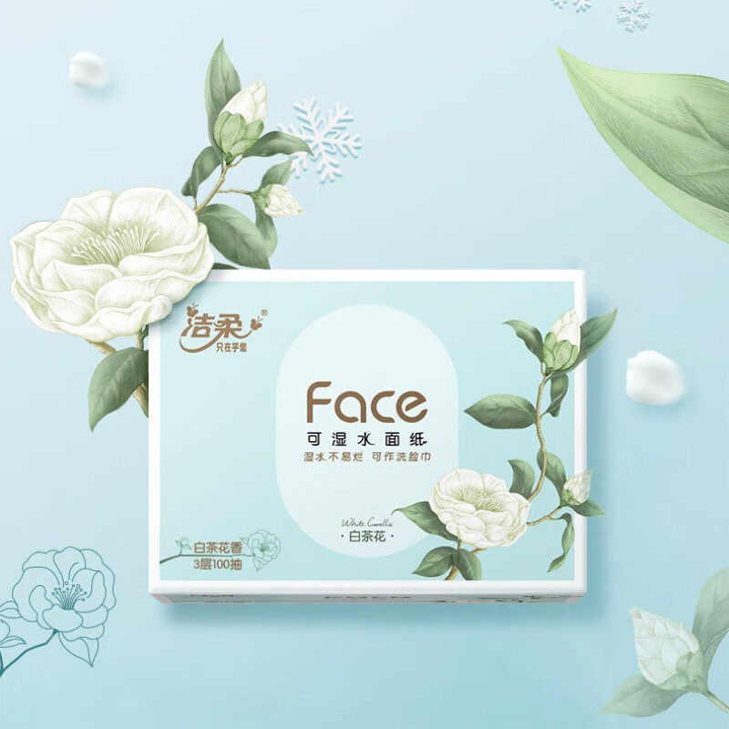 洁柔Face白茶花香软抽3层面巾纸家用常规抽纸卫生纸巾实惠装