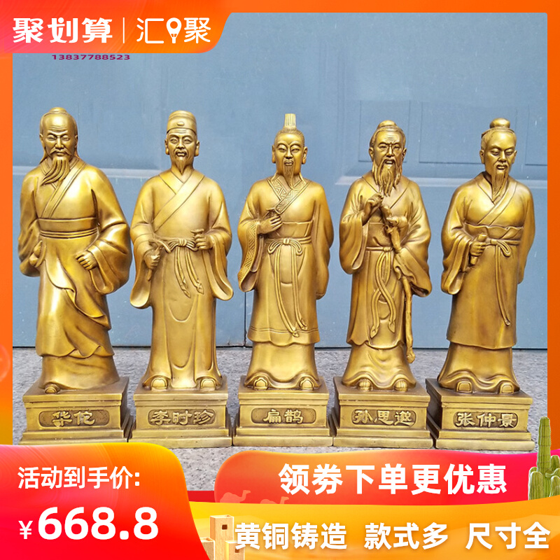 铜五大名医大号华佗李时珍张仲景药王孙思邈Q铜像诊所药房摆件