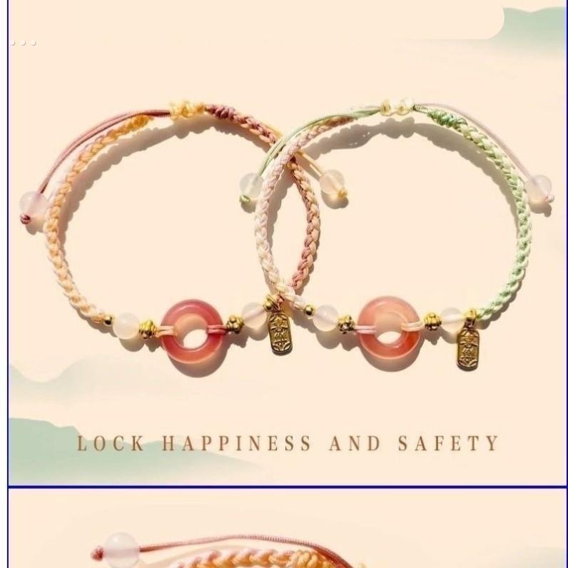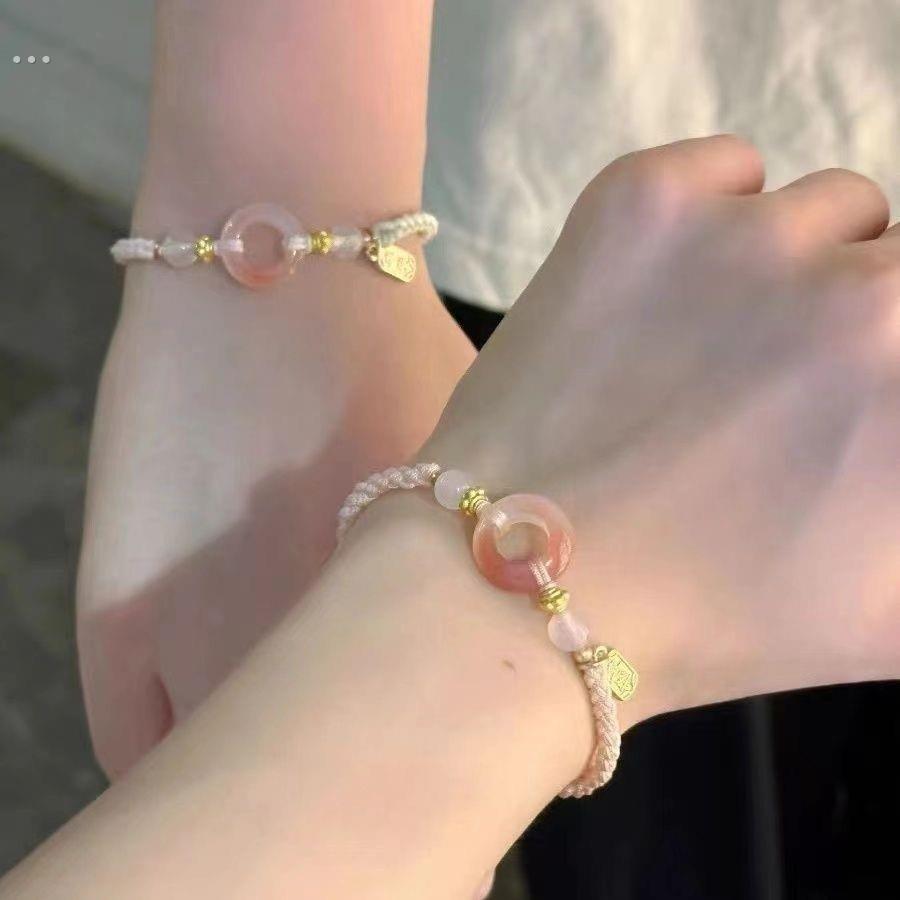 新中式民族国风手绳女童手串2024新款平安扣手炼闺蜜二人编织手饰