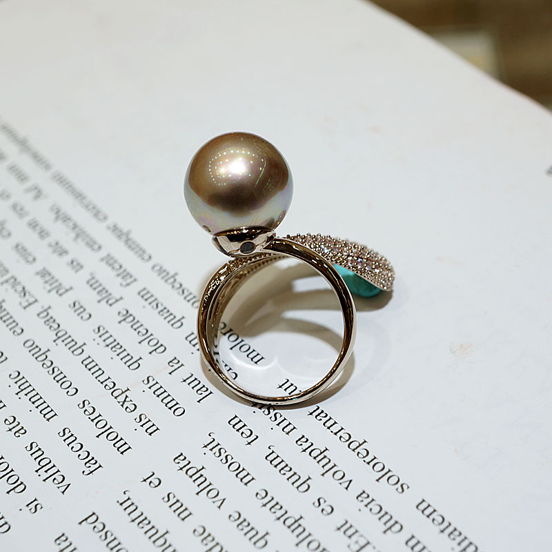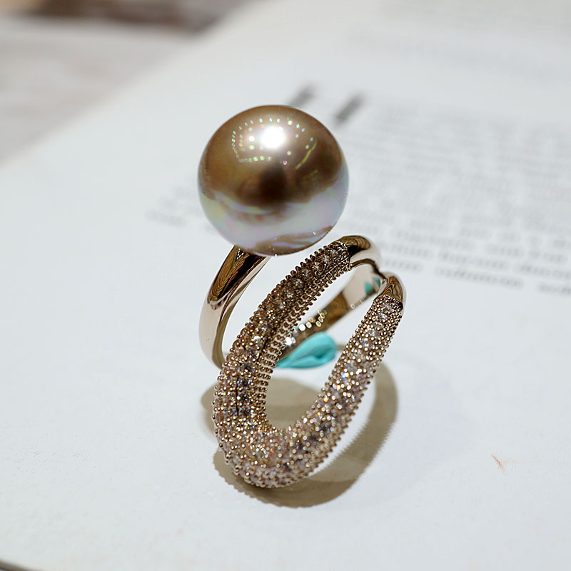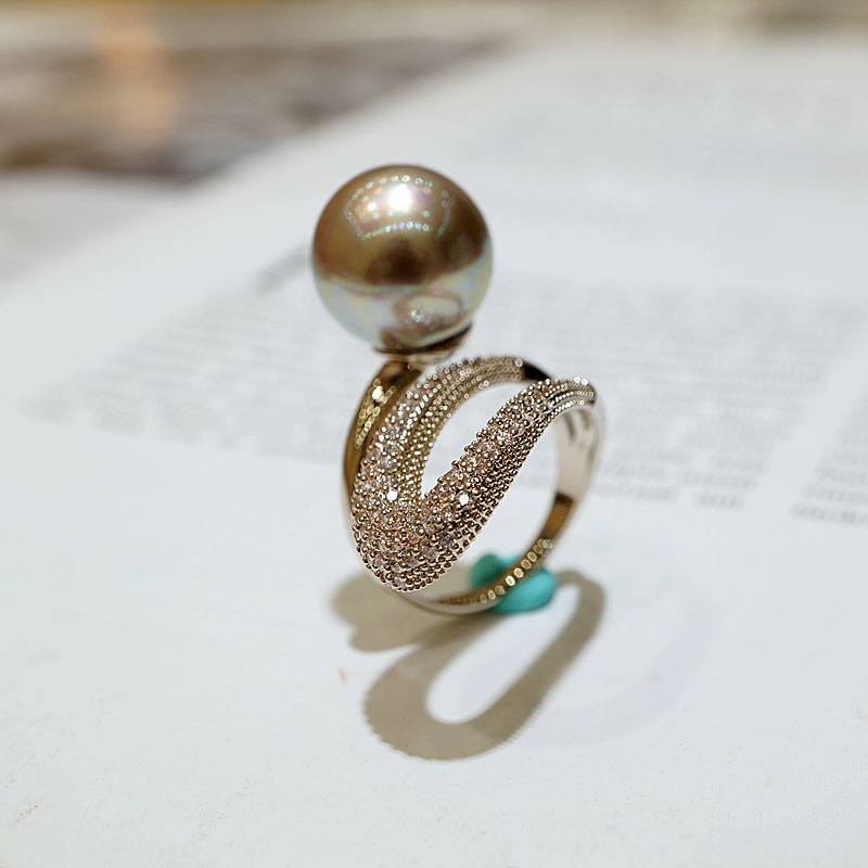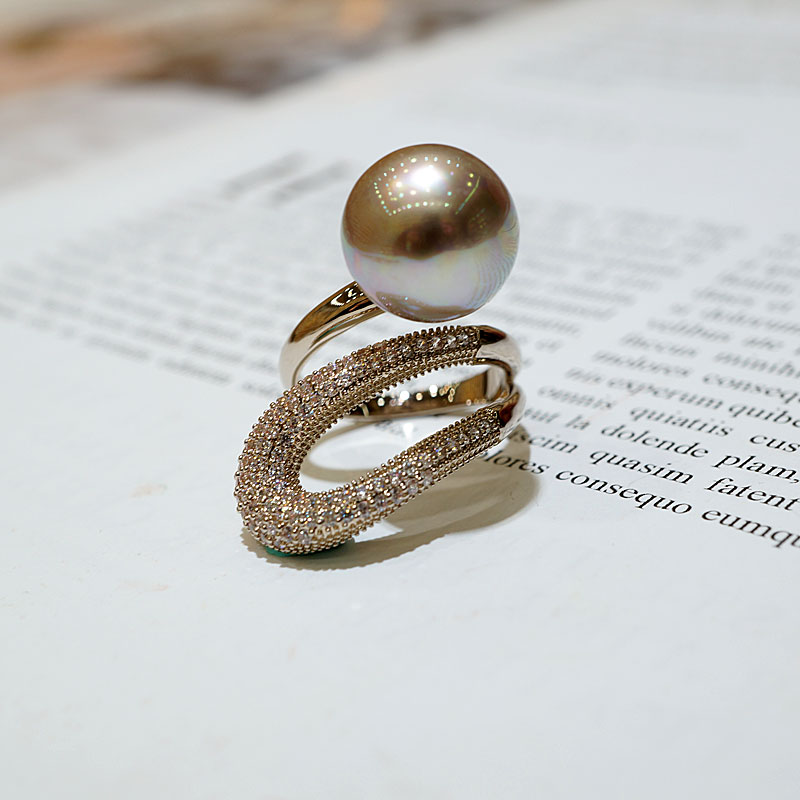 韩国螺旋开口大气珍珠食指戒指女百搭指环优雅气场日韩潮人饰品女