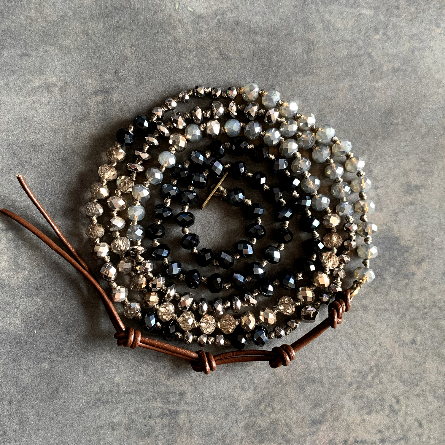 VIKIKO水红晶欧美多层缠绕手链天然黑胆石手绳女生项链双用链