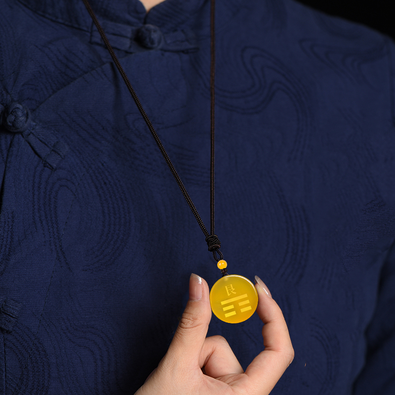 五行八卦吊坠天然玛瑙水晶项链八卦乾坤巽震坎离艮兑五行钥扣挂件