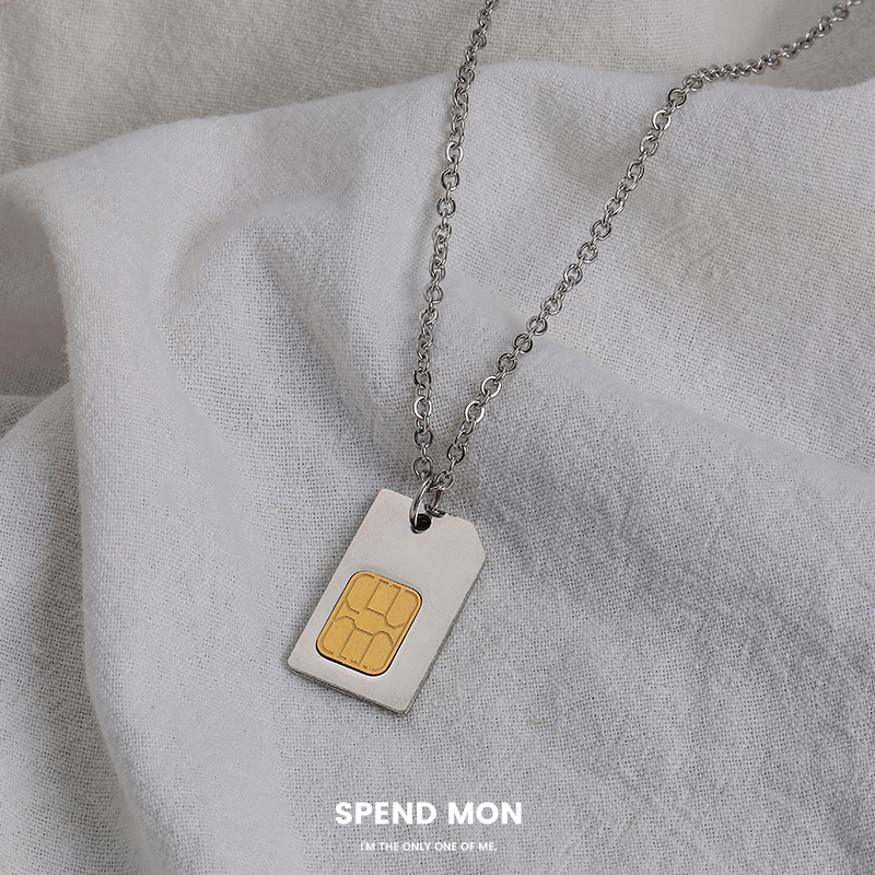 SIM电话卡项链女潮网红ins冷淡风钛钢不掉色吊坠小众设计感芯片