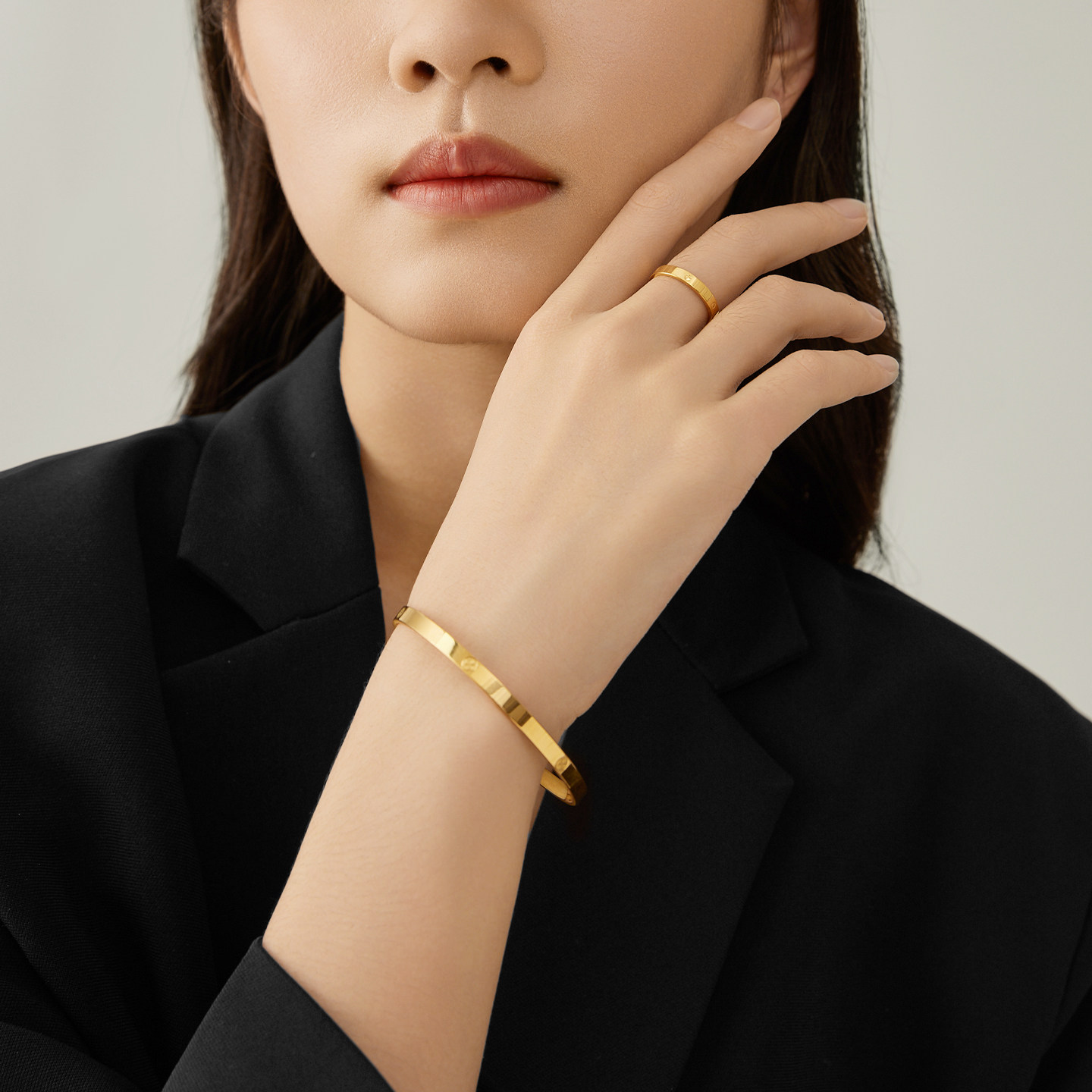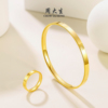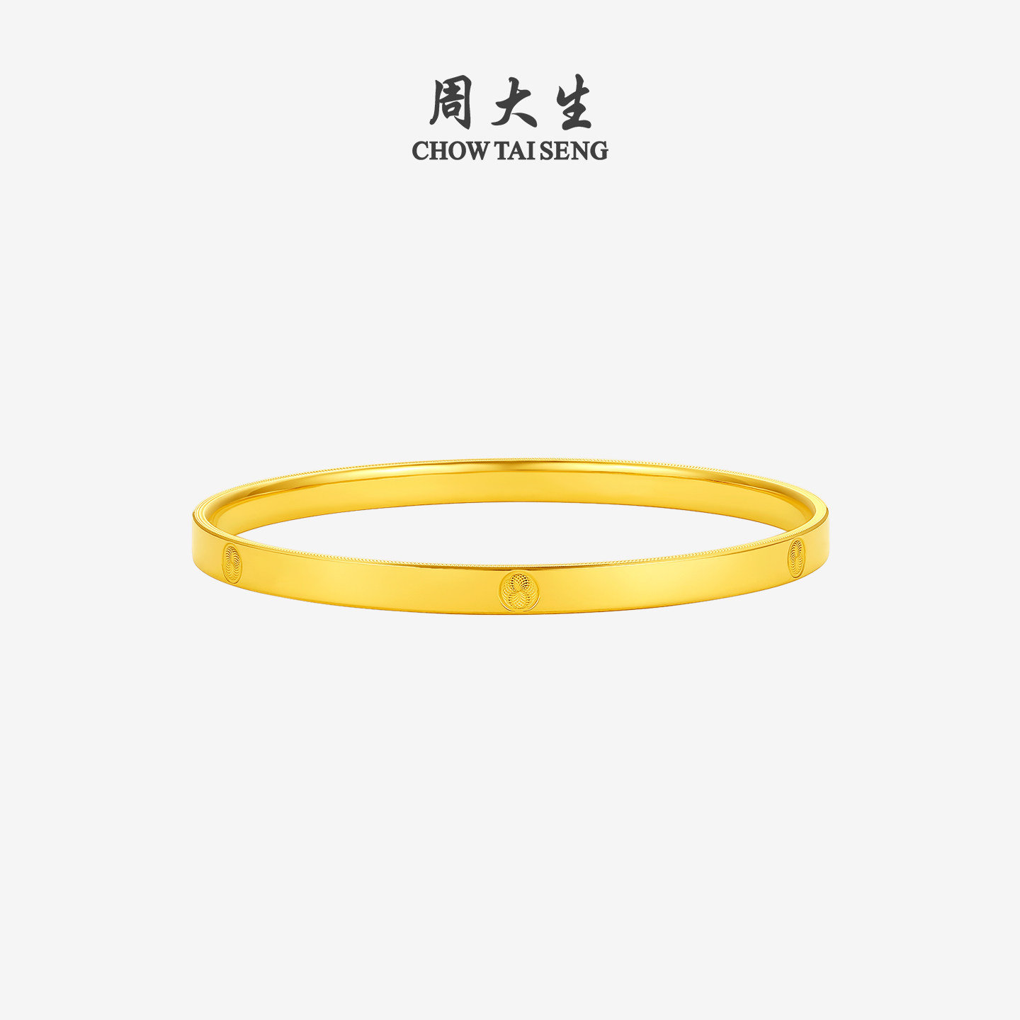 圣诞礼物周大生黄金手镯女5G足金光面素圈手饰钻纹金镯子送女朋友