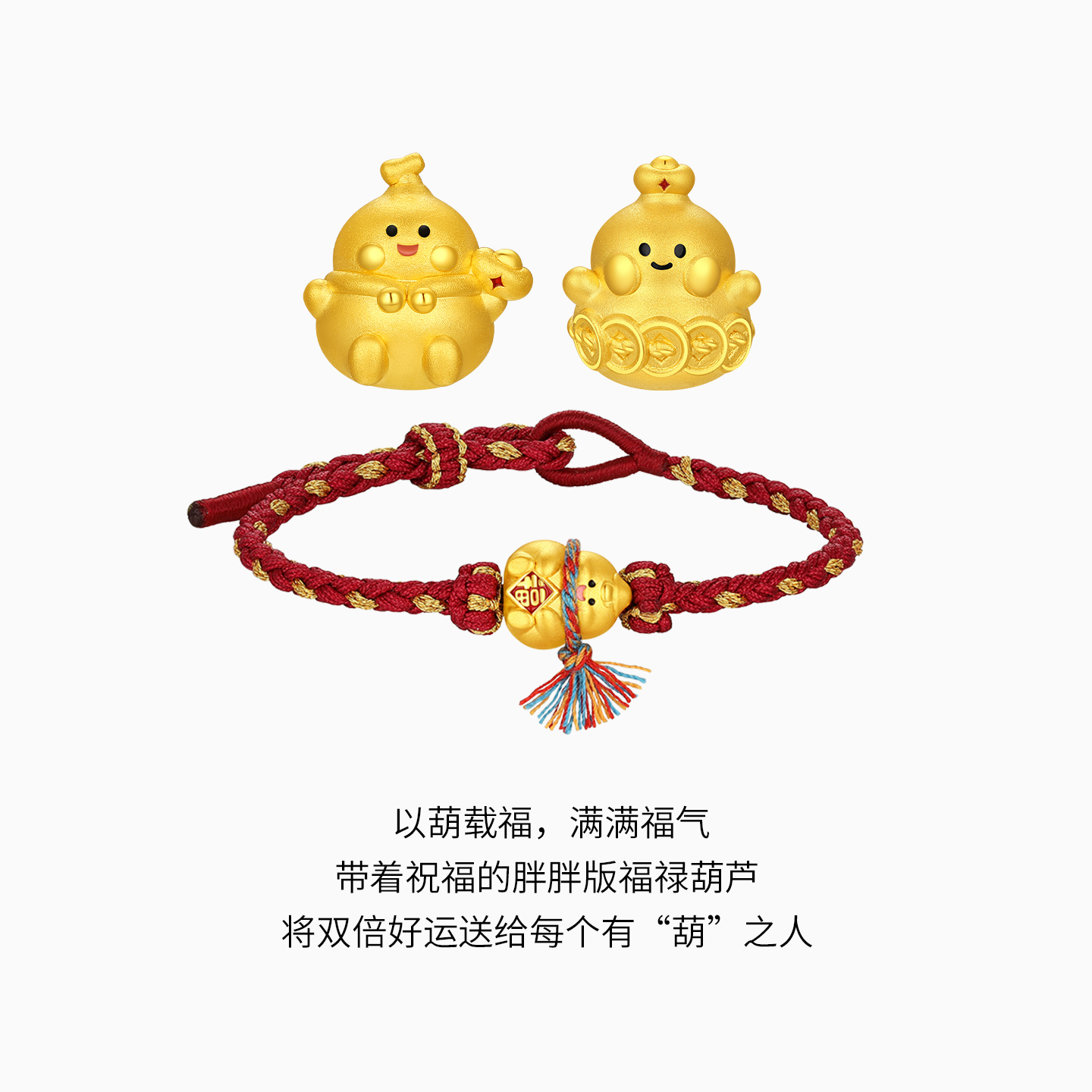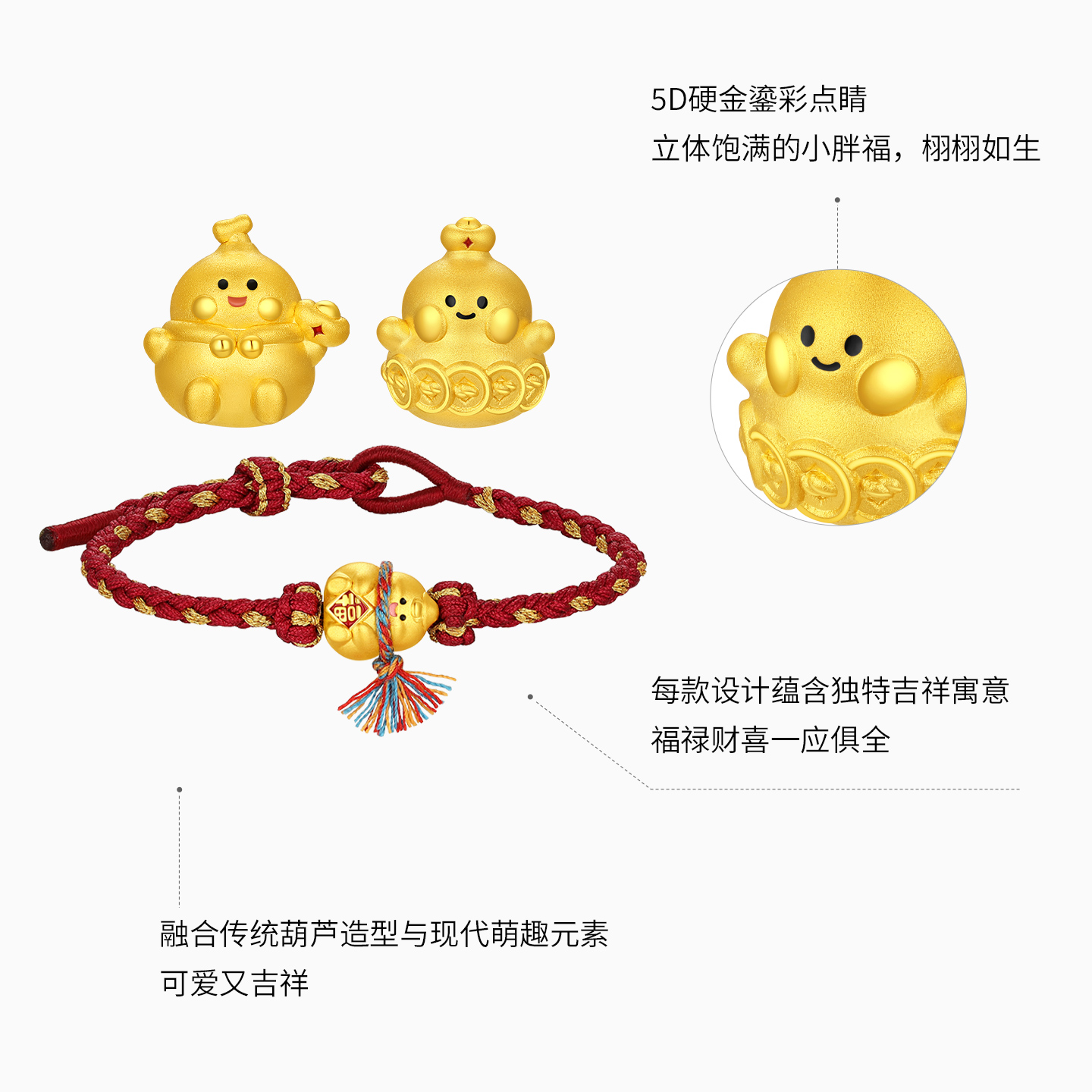 潮宏基小胖葫足金串珠黄金转运珠5D硬金手绳鎏彩葫芦纪念礼物