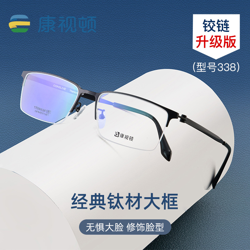 预售眼镜近视眼镜架男纯钛半框中大脸近视眼镜超轻V8920/8912
