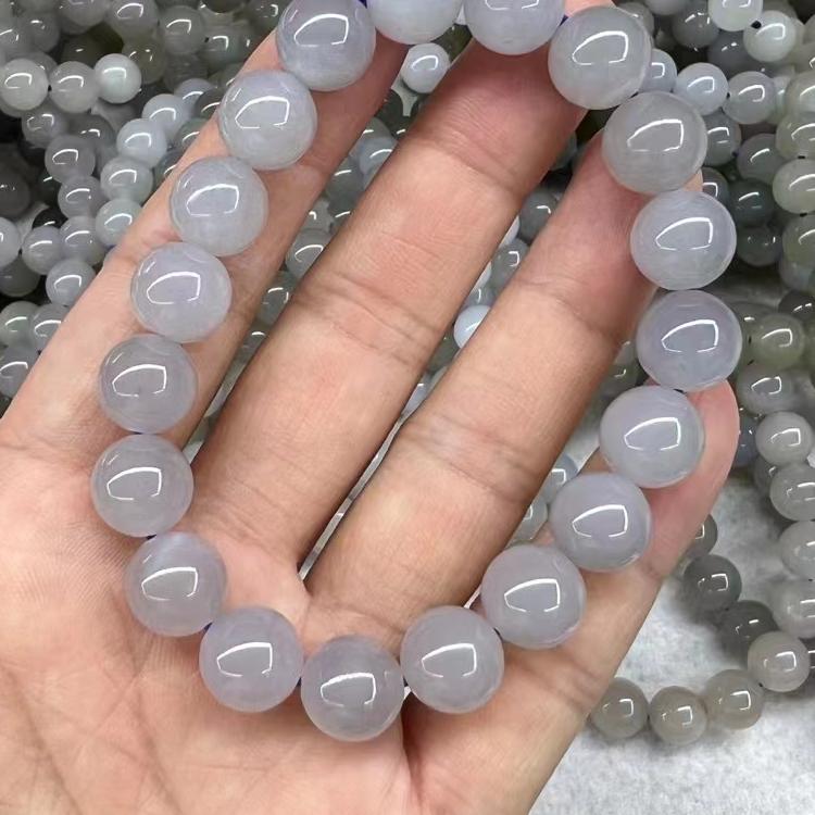 和田玉烟紫色散珠单珠手串天然圆珠玉石女款佛珠diy手工配珠手链