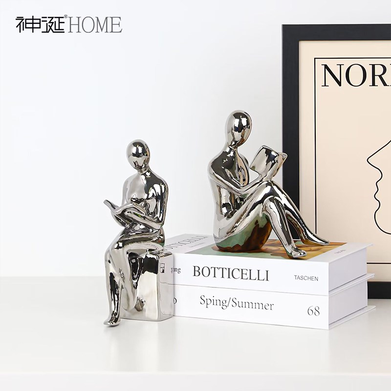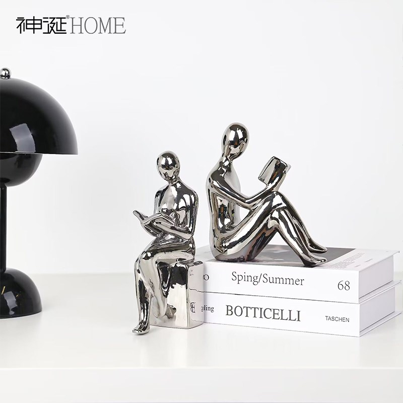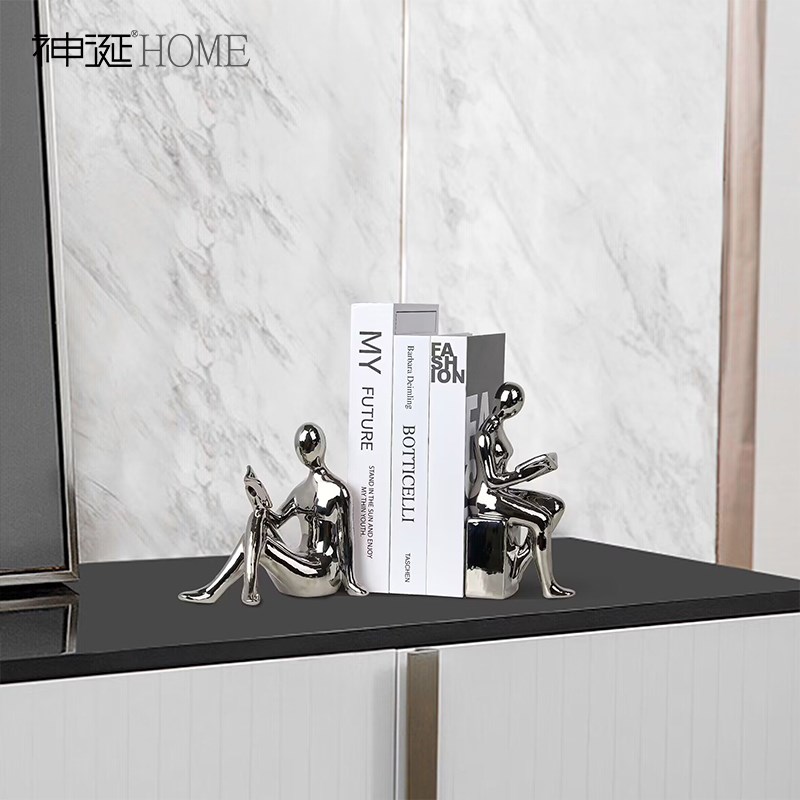 现代简约陶瓷人物书挡假书摆件家居客厅桌面书P房书桌装饰书立摆