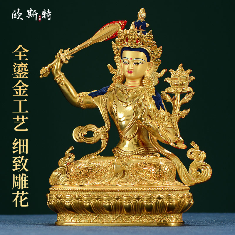 欧斯特 文殊菩萨铜像智慧菩萨铜全鎏金7寸 家居玄关客厅中式摆件