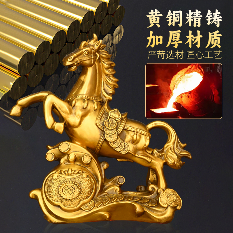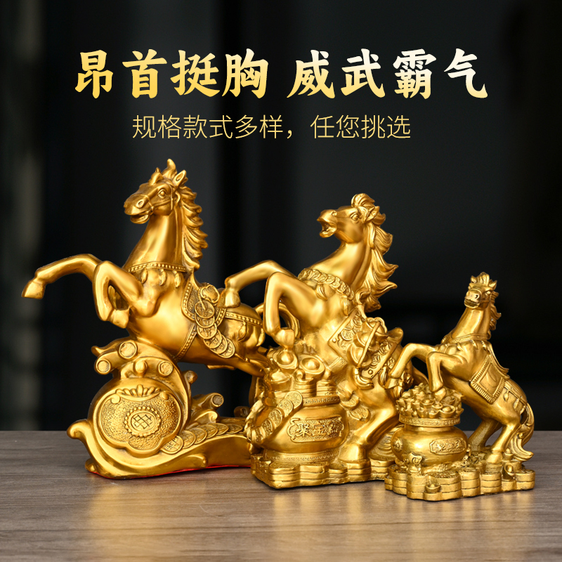 铜如意金钱马摆件马到成功生肖马跃马客厅酒柜装饰开业乔迁礼品