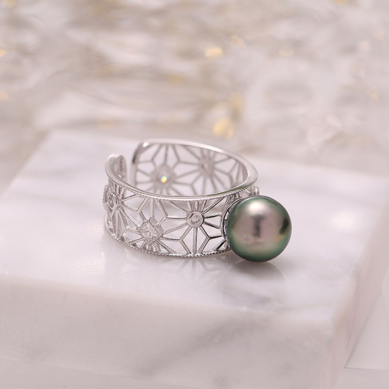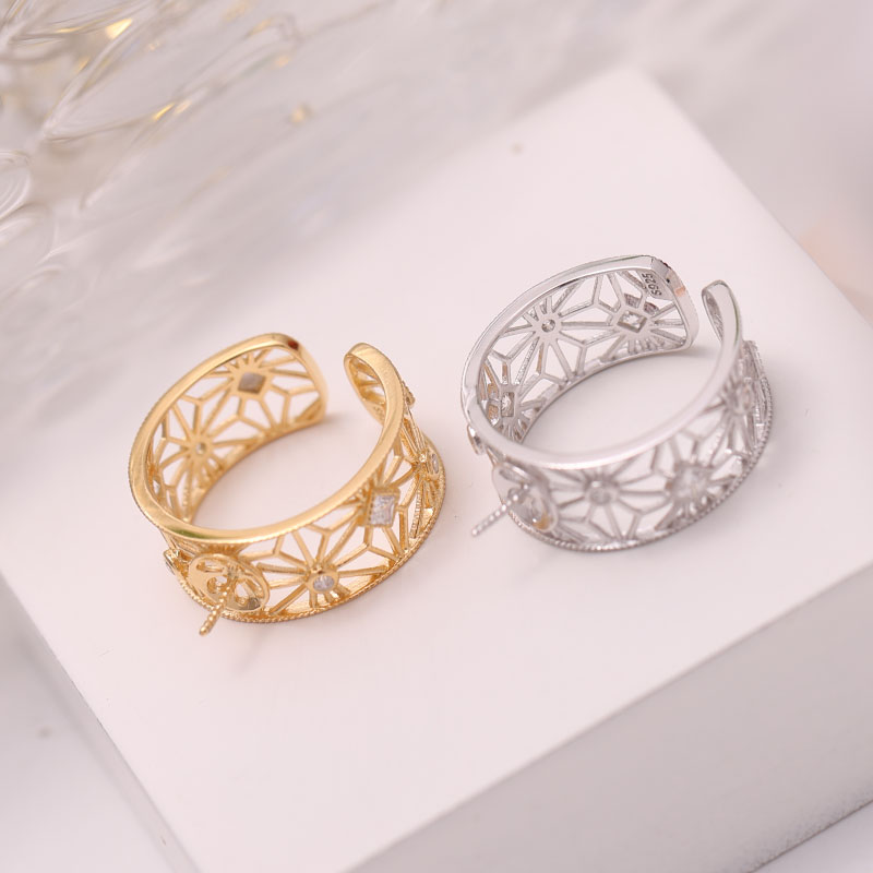 DIY珍珠配件S925纯银精工镂空蕾丝气质戒指托指环戒托空托配饰