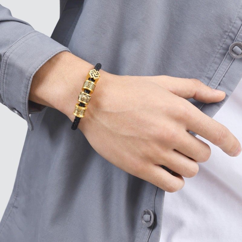 圣诞周生生CharmeXL酷黑系列霸气貔貅福气临门足金串珠黄金转运珠