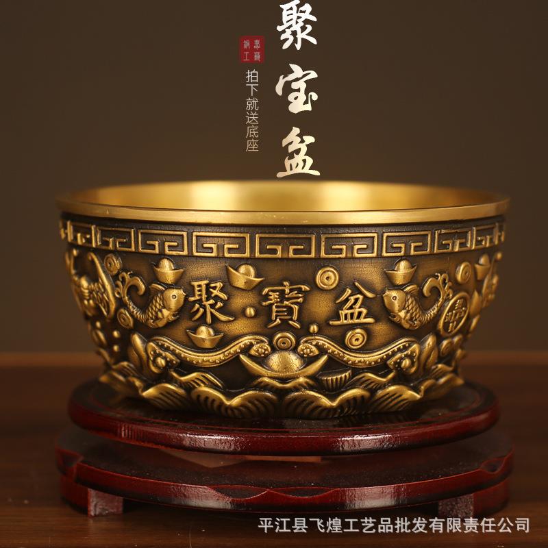 厂家纯黄铜实加重加厚无盖聚财聚宝盆客厅玄关工艺品摆件装饰