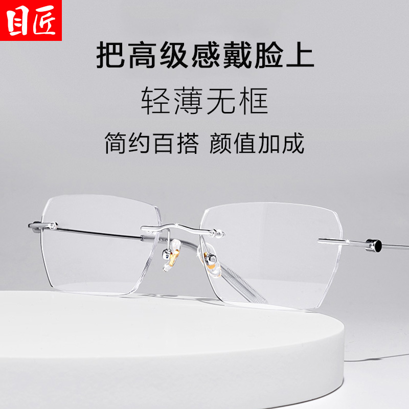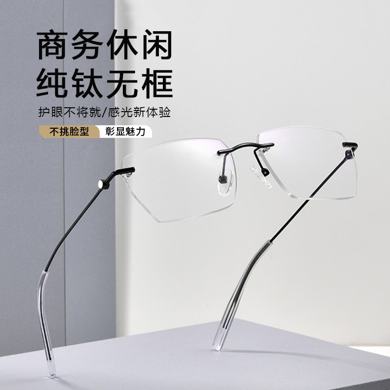 超轻纯钛无框近视眼镜框男款可配度数斯文败类无边框变色散光镜架