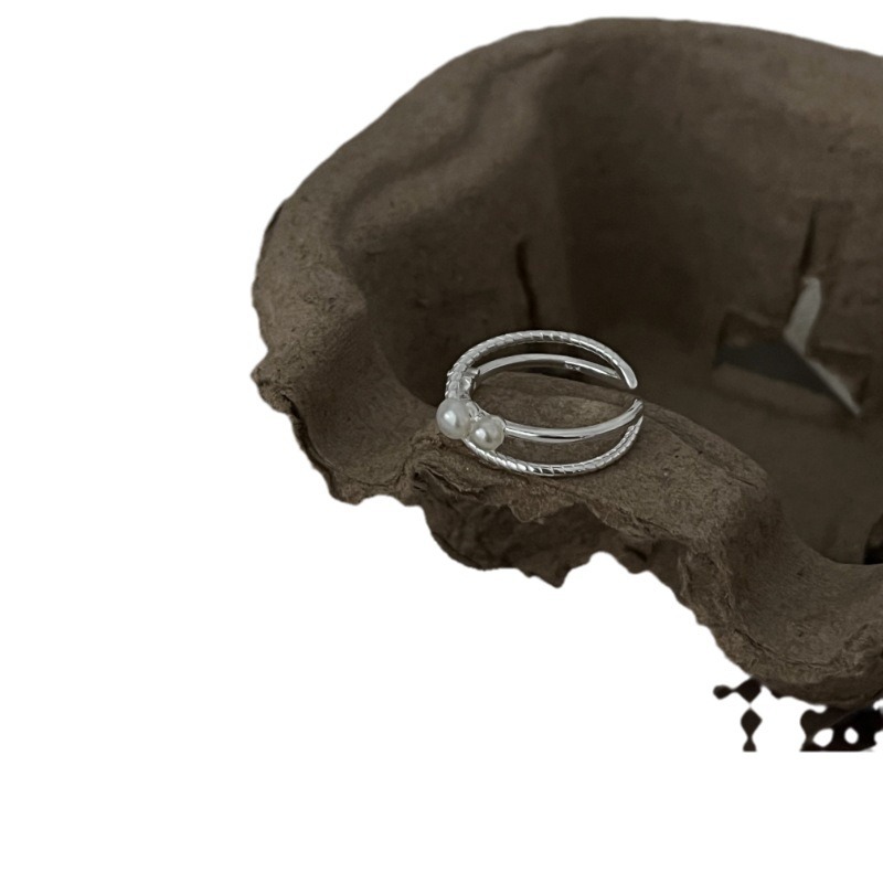 lulu 韩国珍珠交叉戒指女ins食指纯银轻奢高级感小众设计个性简约
