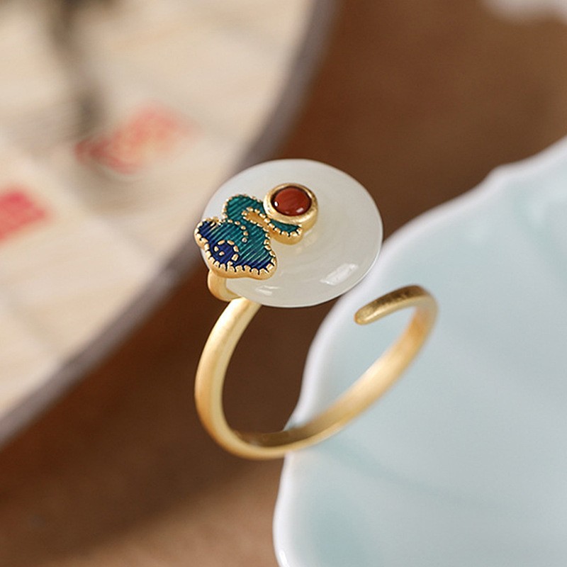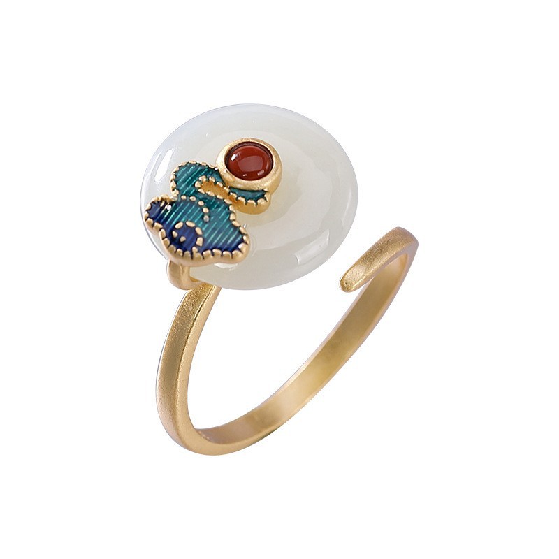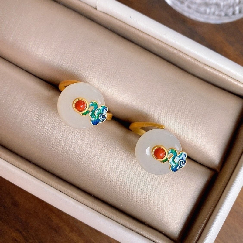 【新年转运】天然和田平安扣戒指S925纯银烧蓝祥云复古中国风食指