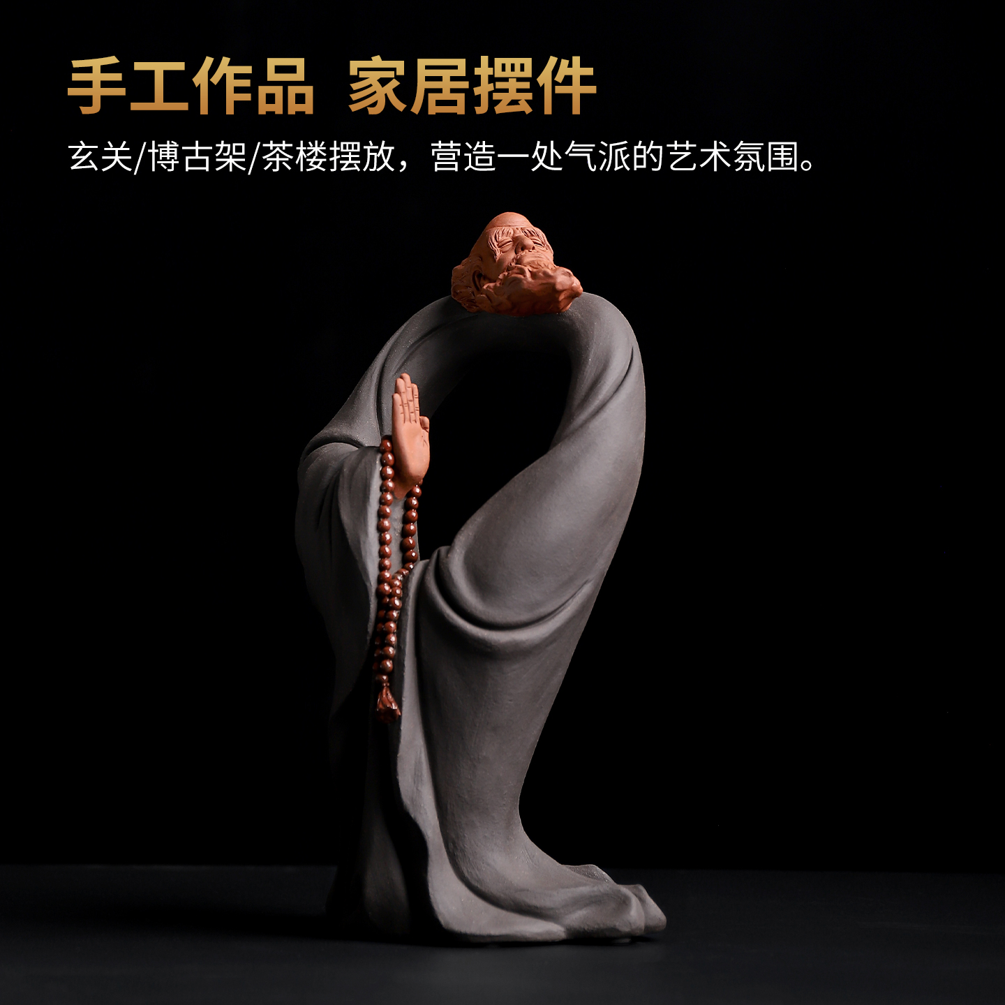 东方泥土张明贵大师作品陶瓷达摩雕像摆件家居书房客厅玄关装饰品
