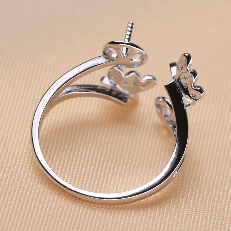 DIY配件 S925银调节活口蝴蝶指环 戒指托 珍珠空托半成品手工饰品