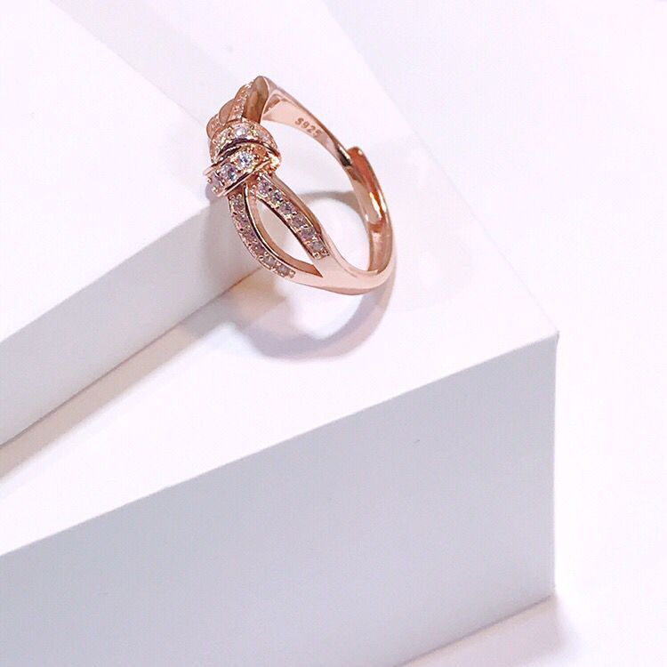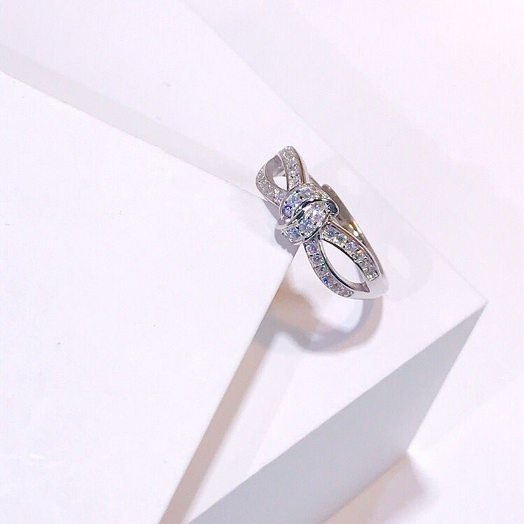 正品香港正生纯银s925丝带蝴蝶结闪钻戒指女爆款气质活口可调节食
