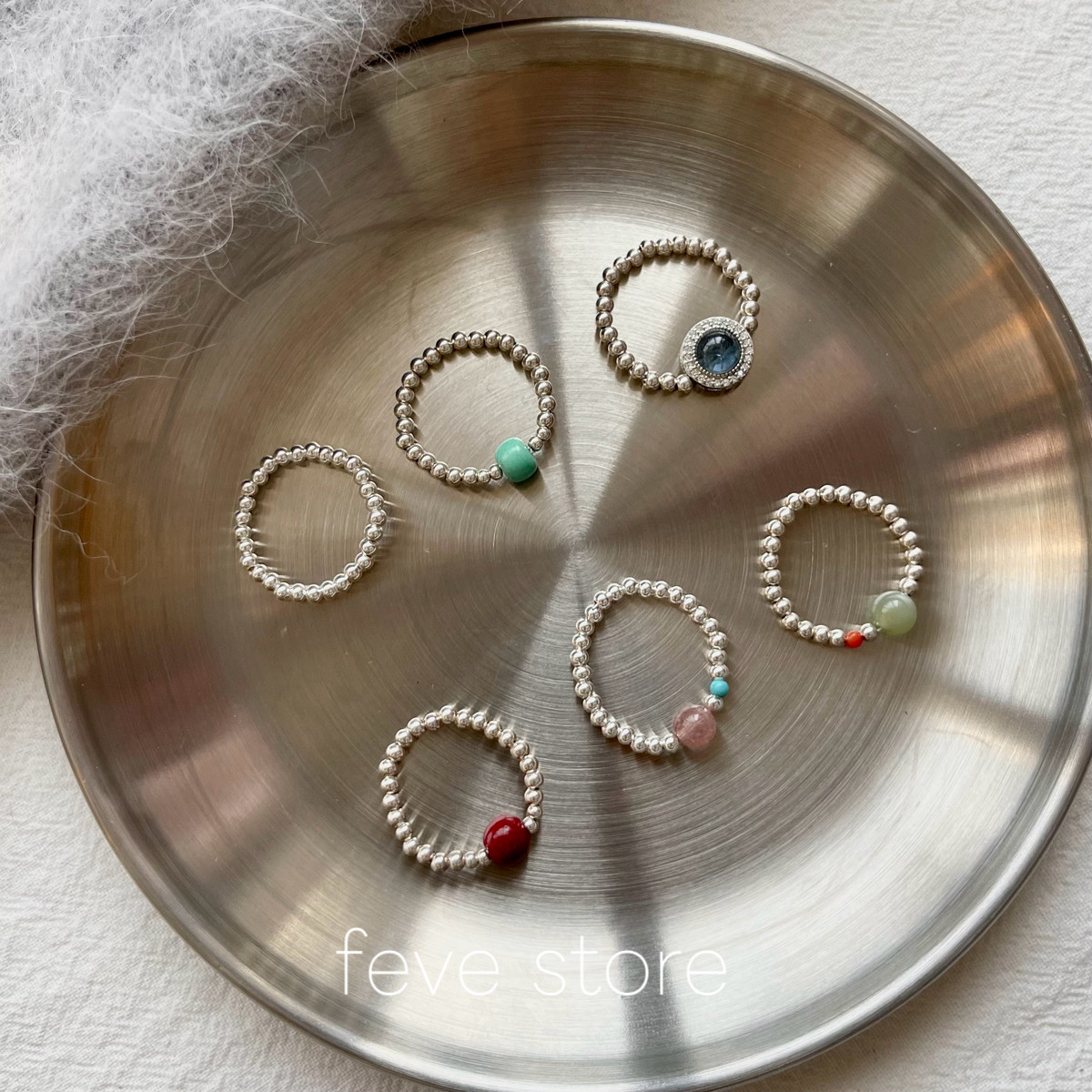 S925纯银串珠叠戴戒指素圈简约小众南红和田玉朱砂指环食指可定制