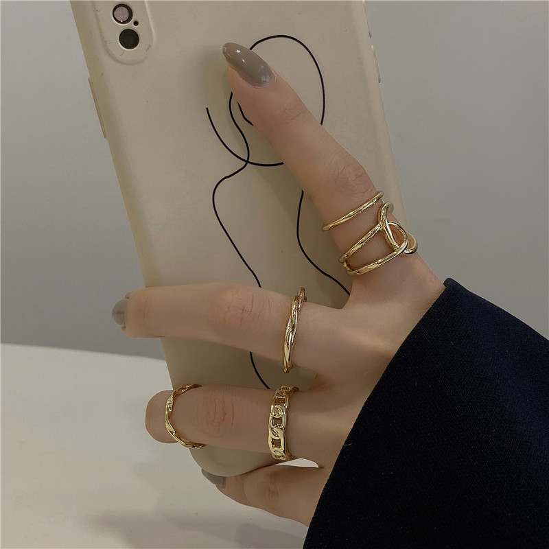 五件套~ins潮戒指女时尚个性轻奢精致小众设计高级感套装开口套戒