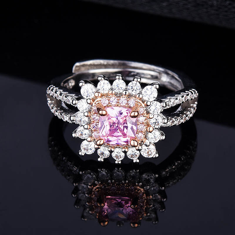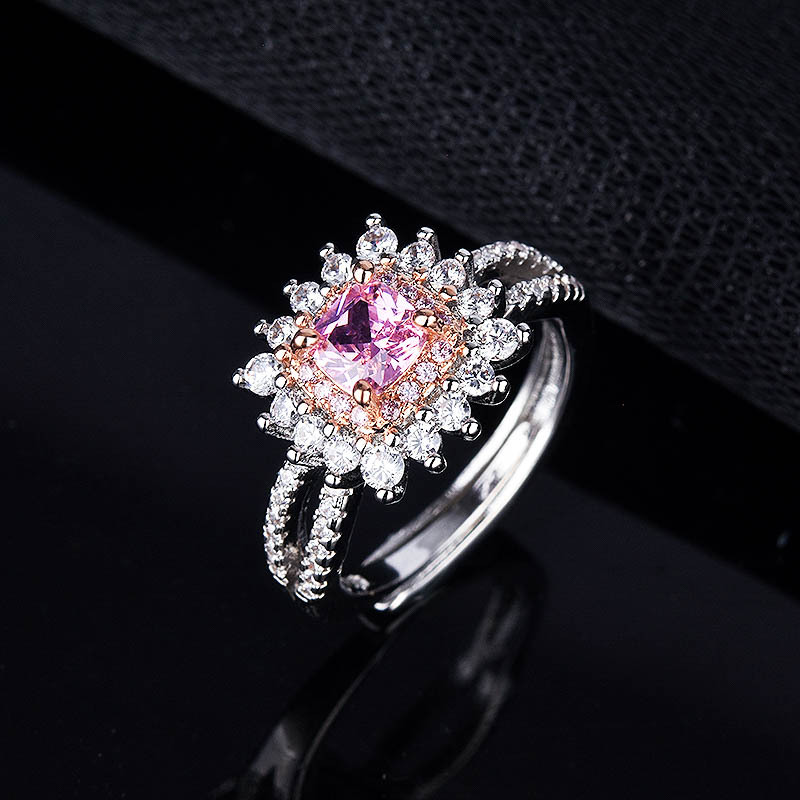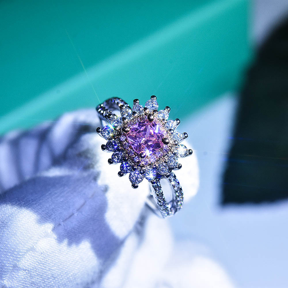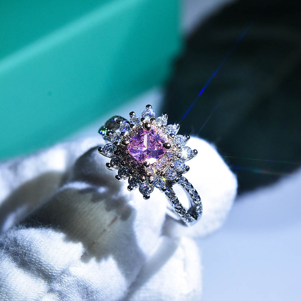 Young直播爆款双色电镀pt950仿真钻石粉钻克拉彩钻结婚戒指钻戒女
