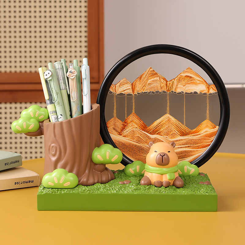 放轻松卡皮巴拉笔筒流沙画摆件桌面装饰品情绪稳定神器送老师礼物