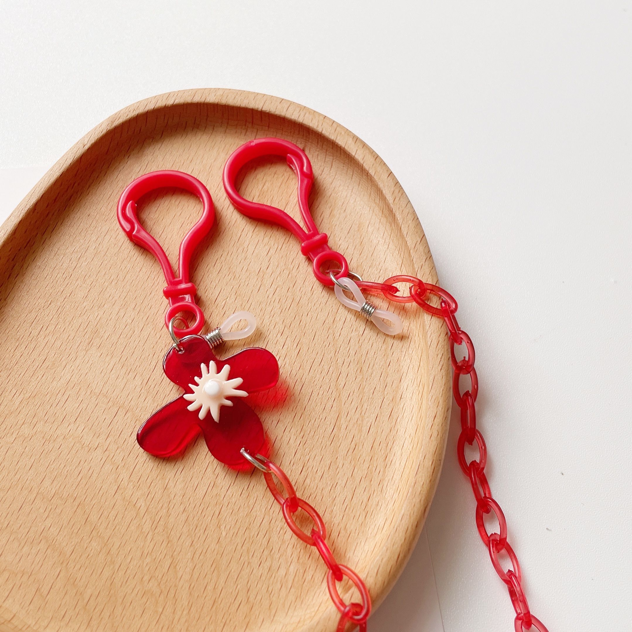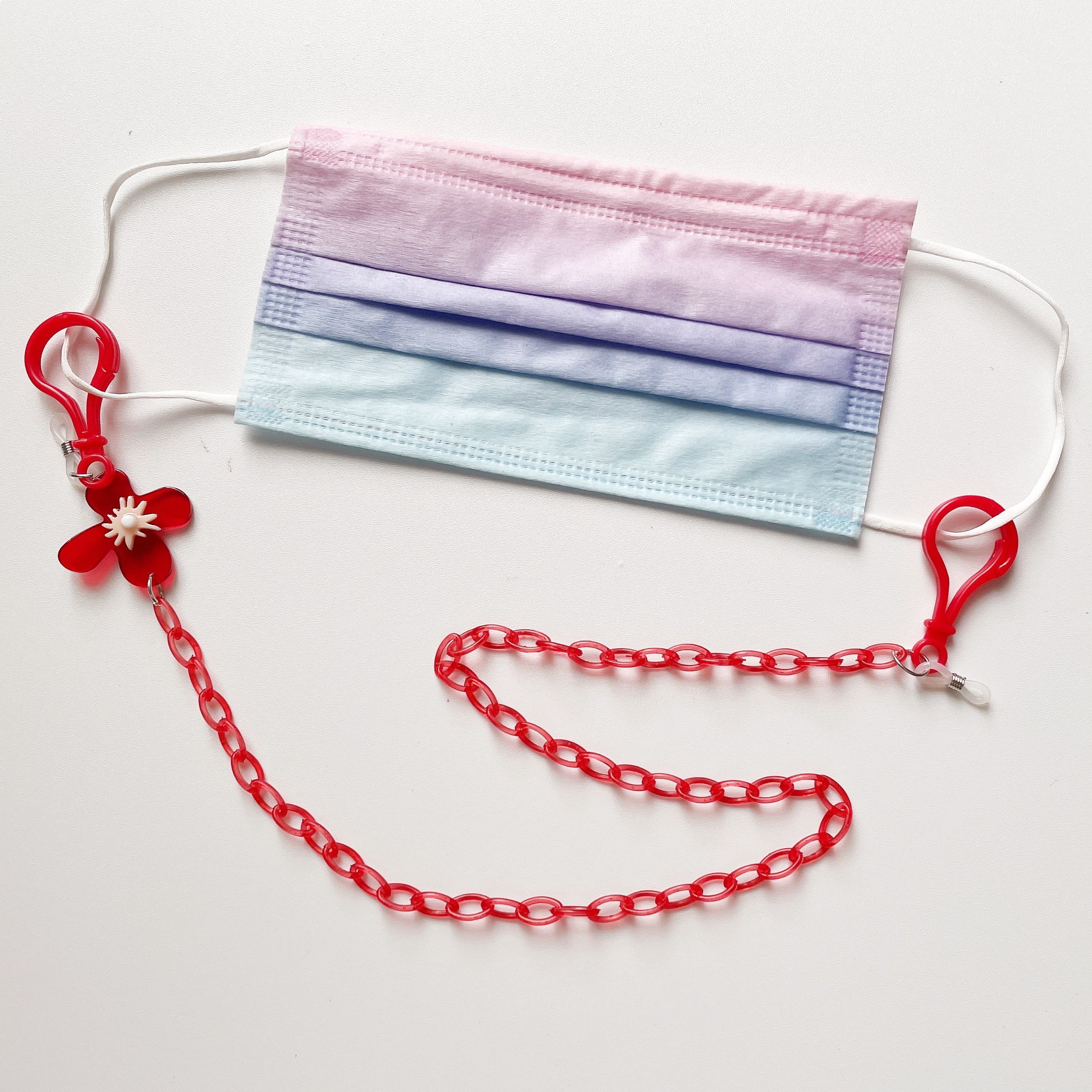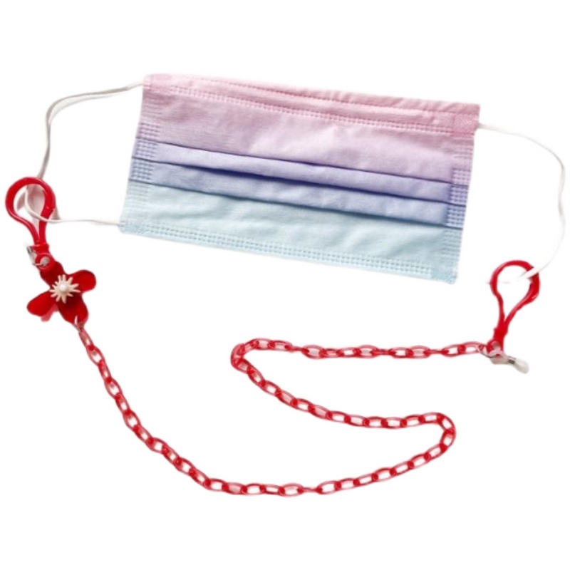 口罩链红色亚克力细链透明小花吊坠无线耳机链实用眼镜链装饰项链