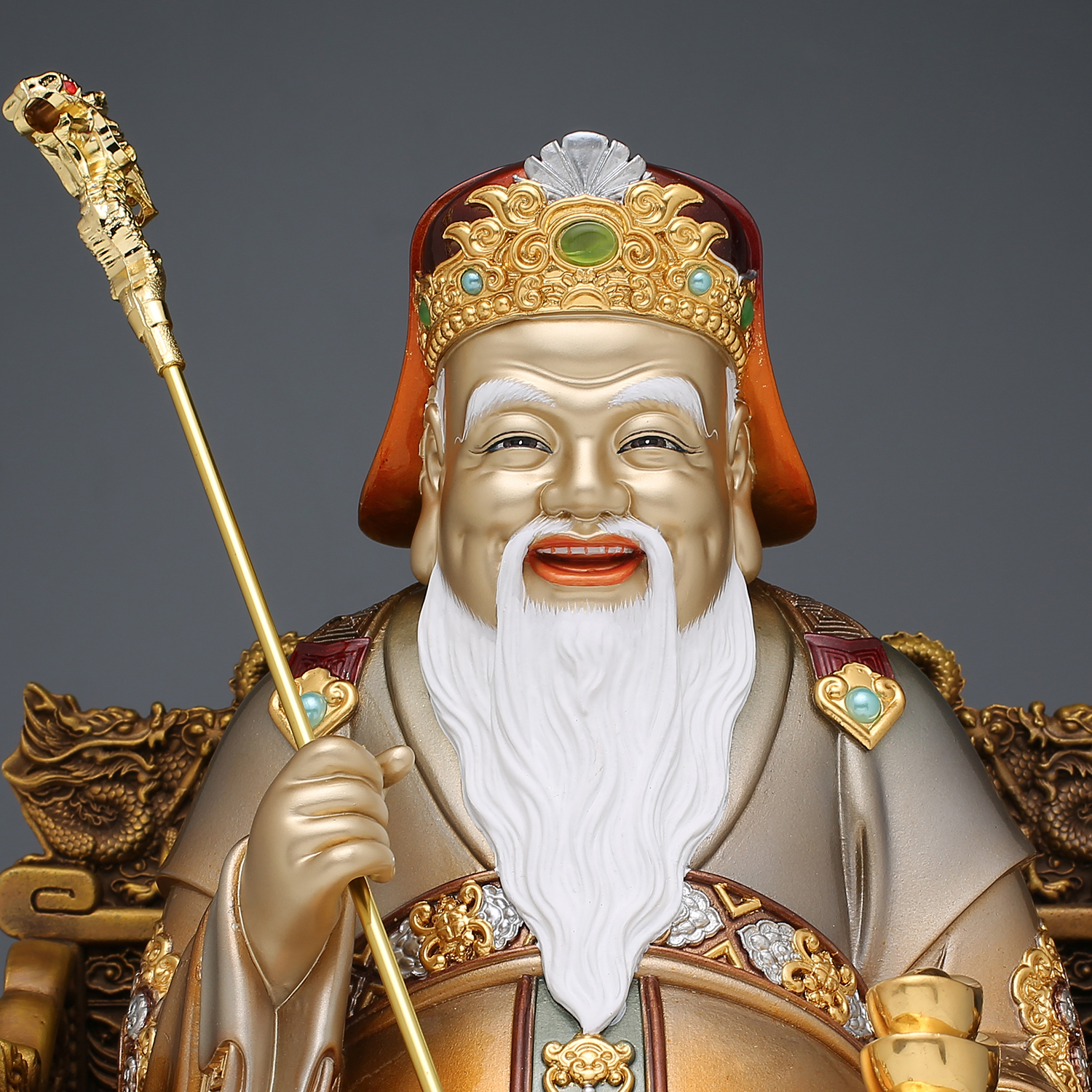 纯铜彩绘土地公福德正神地主财神土地公婆土地爷土地奶神像摆件
