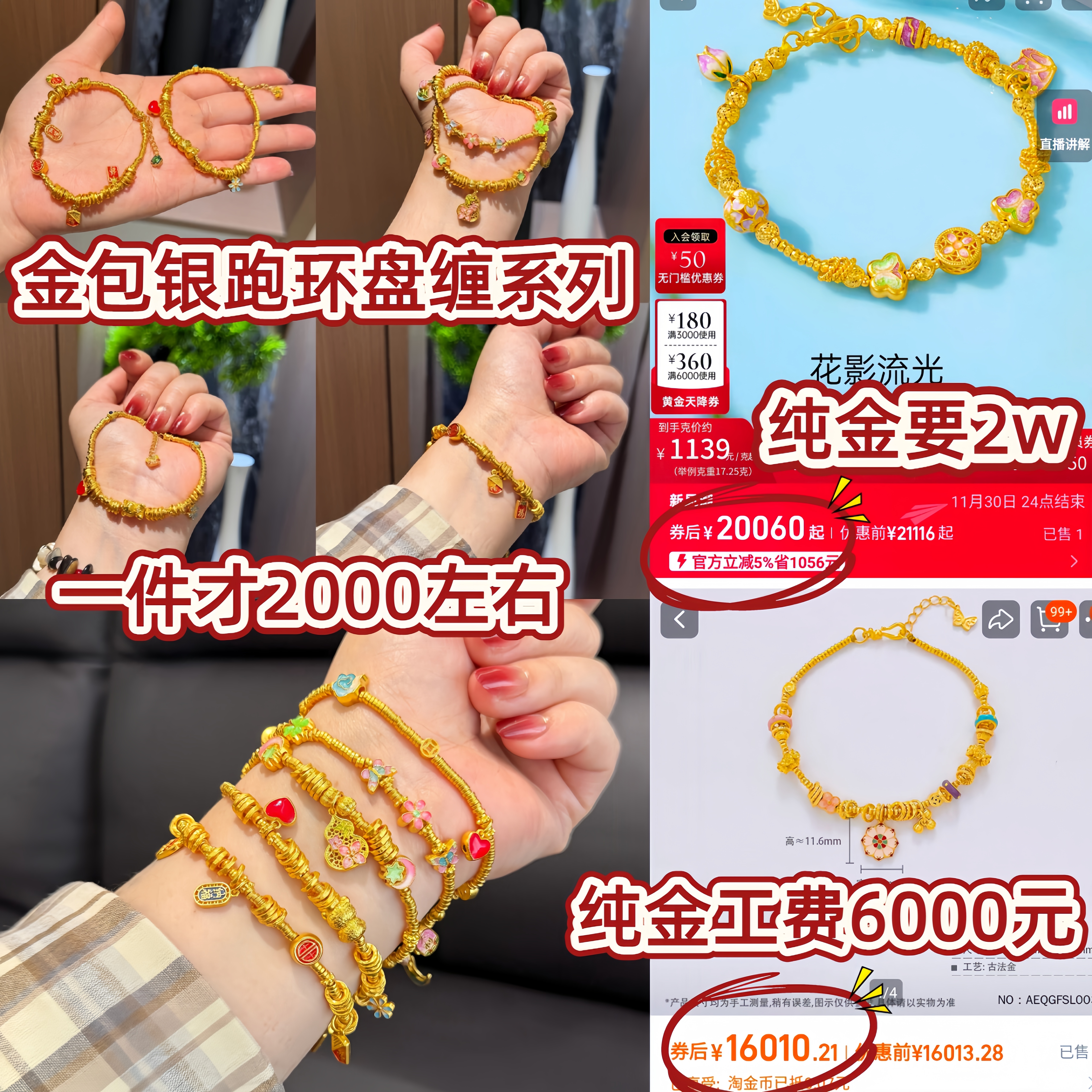 金包银盘缠手链女实心不变形女新款本命年送闺蜜礼物黄金质感轻奢
