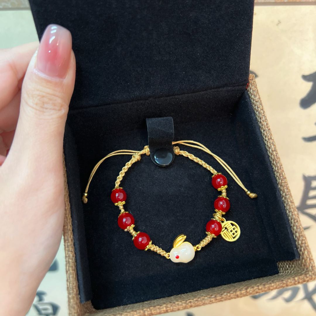 中秋节手工diy编织福字玉兔手链材料包自制手绳五彩绳送女友礼物