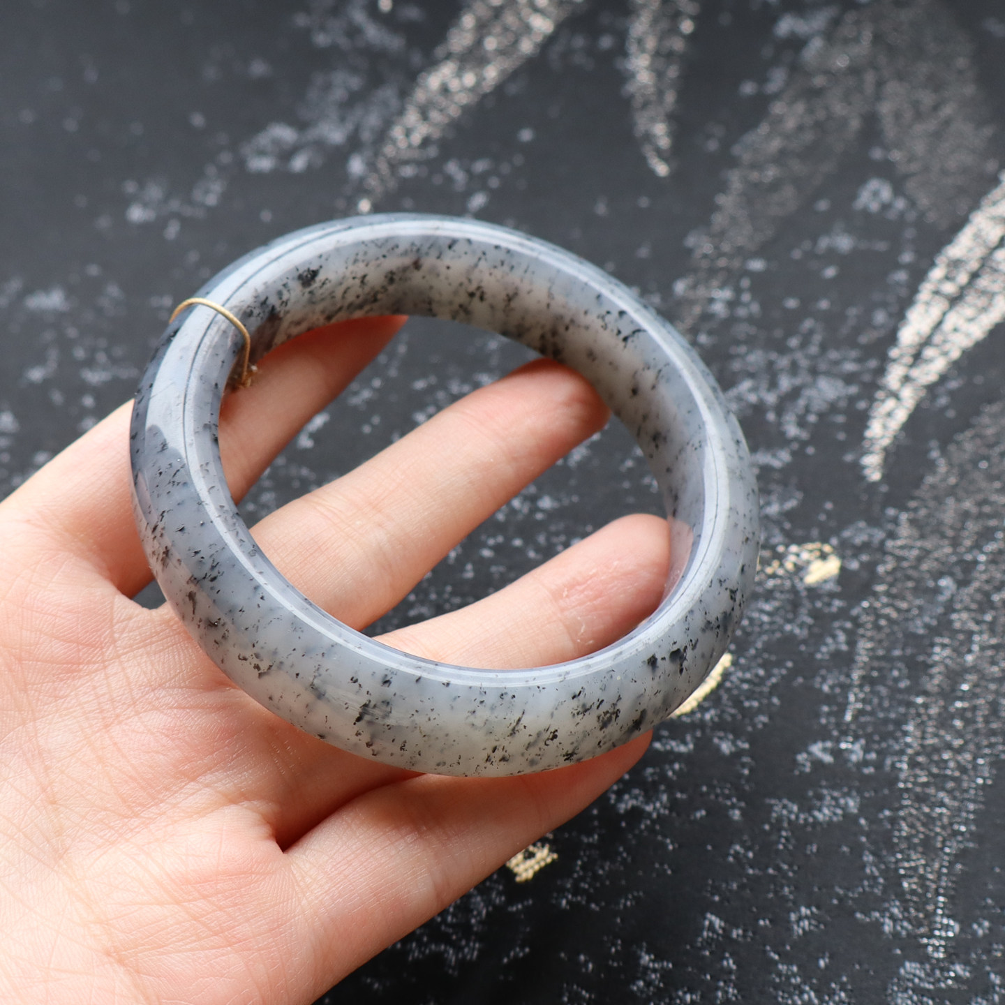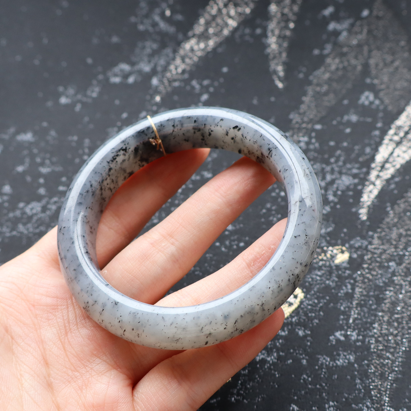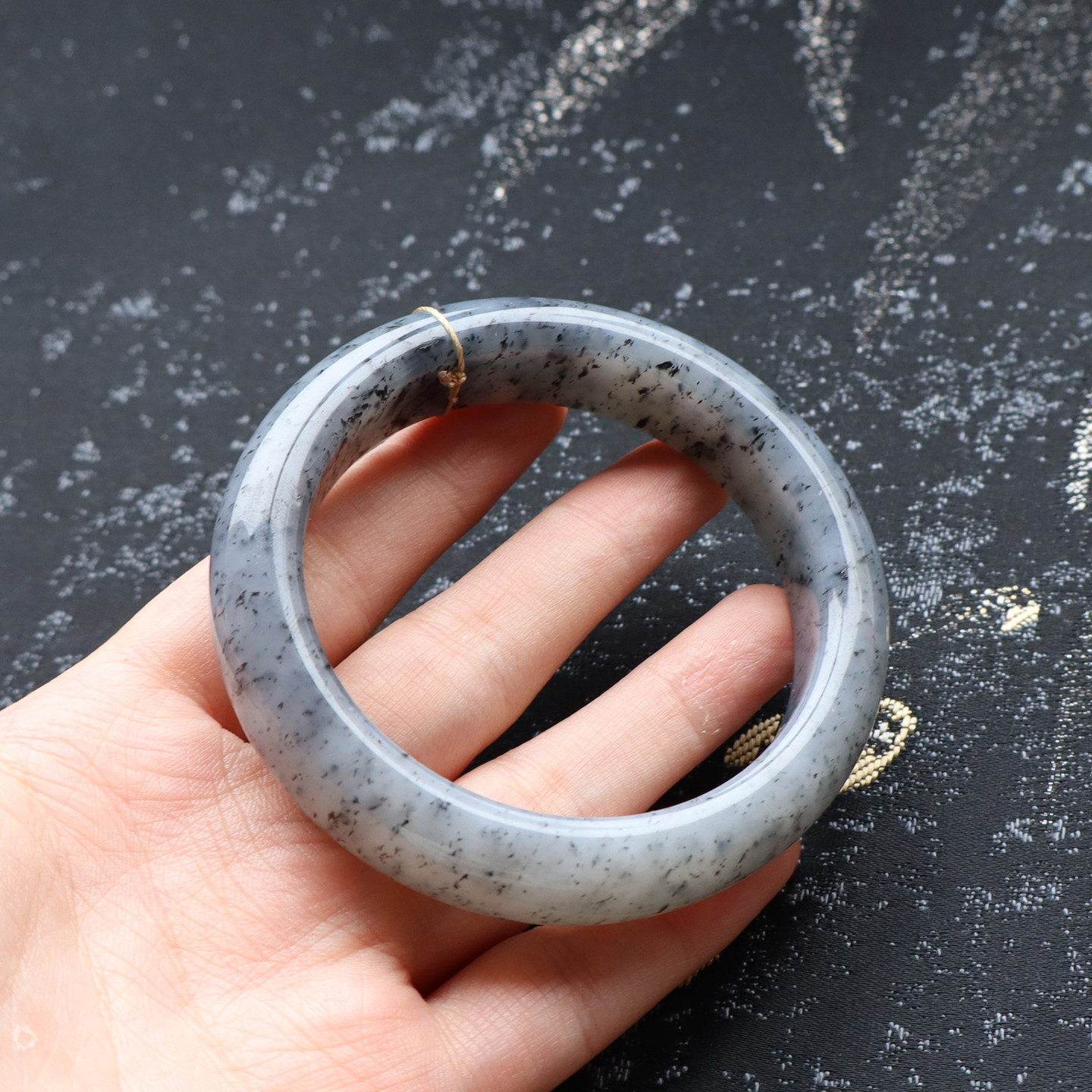 天然和田玉新疆老熟白玉底油润青花点墨籽料芝麻糊57MM手镯70克A
