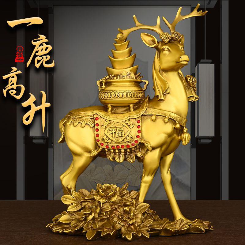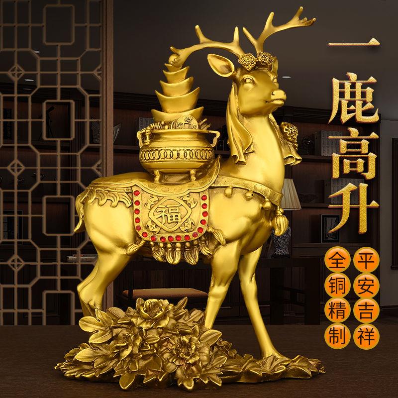 纯铜鹿摆件聚宝盆鹿福禄双全家居客厅办公室桌面装饰一路高升福鹿