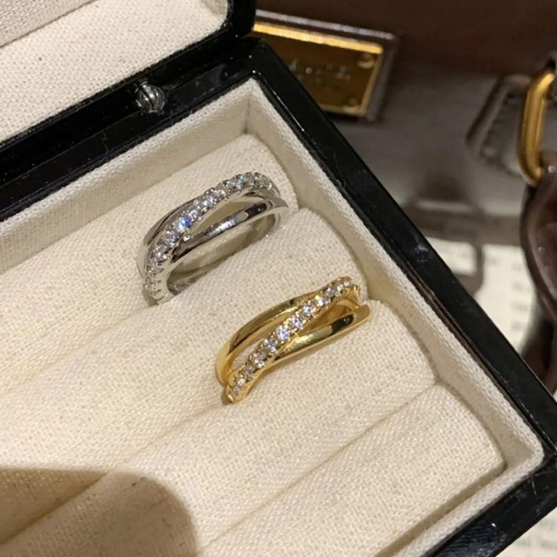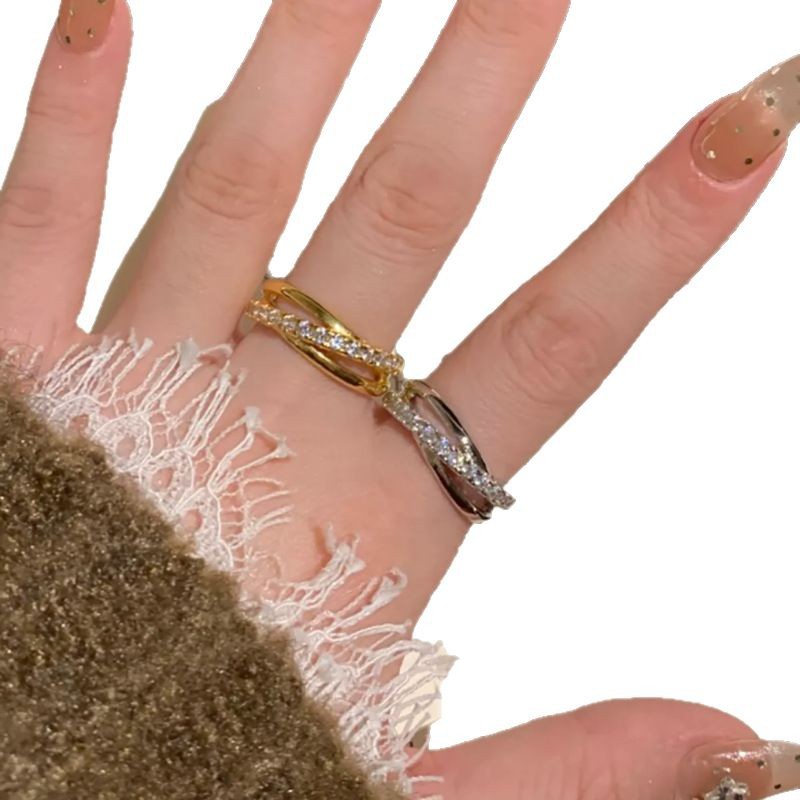 闪钻多层交叉缠绕戒指女法式轻奢高级感精致小众设计优雅名媛