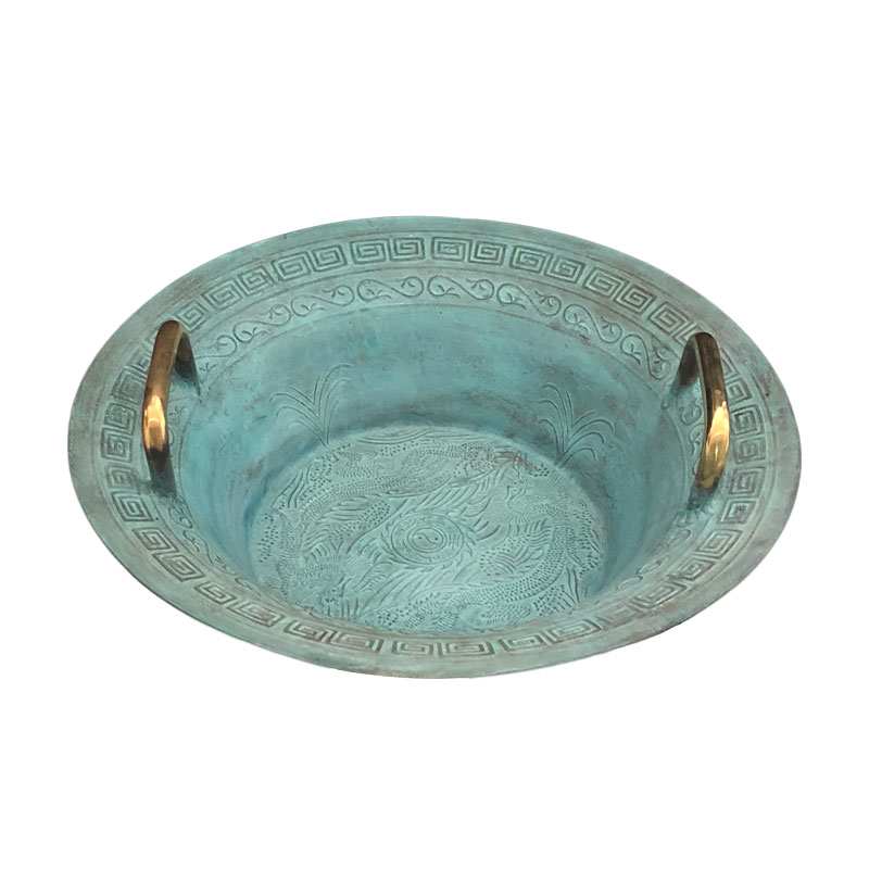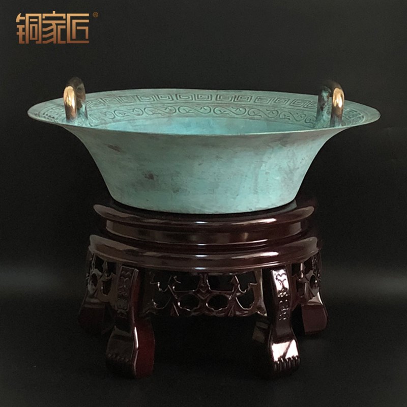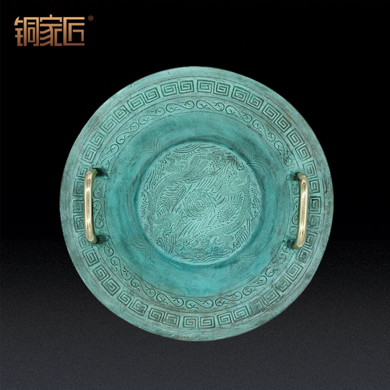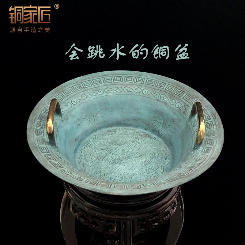 青铜器仿古摆件铜盆纯铜聚宝盆鱼洗E盆龙洗盆家用风水招财聚财客
