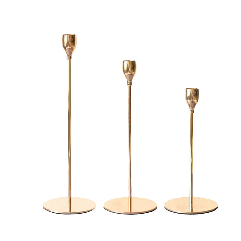 热销欧式烛台轻奢金色单头复古摆件家居样板房婚庆餐厅餐桌气氛装