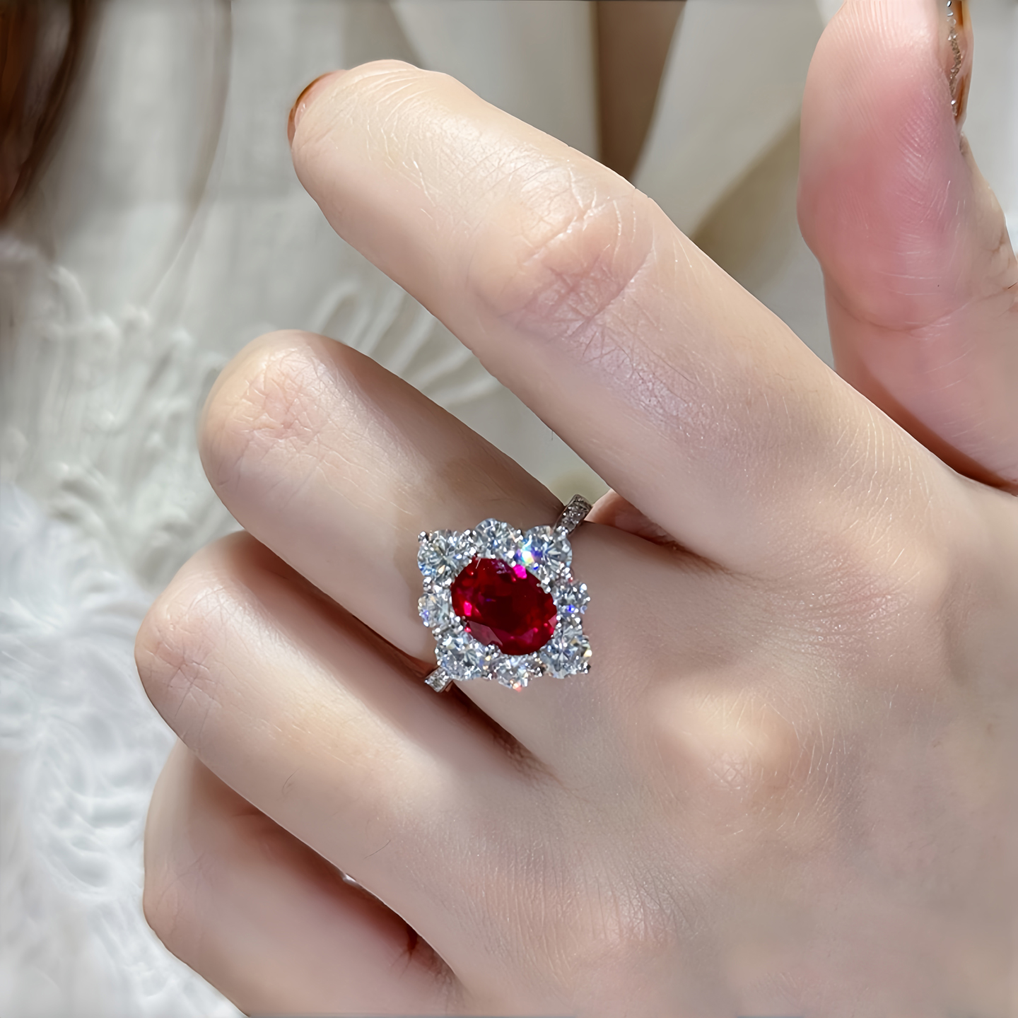 超闪显白围镶钻2克拉红宝石戒指女轻奢高级感鸽血红宝石彩宝钻戒