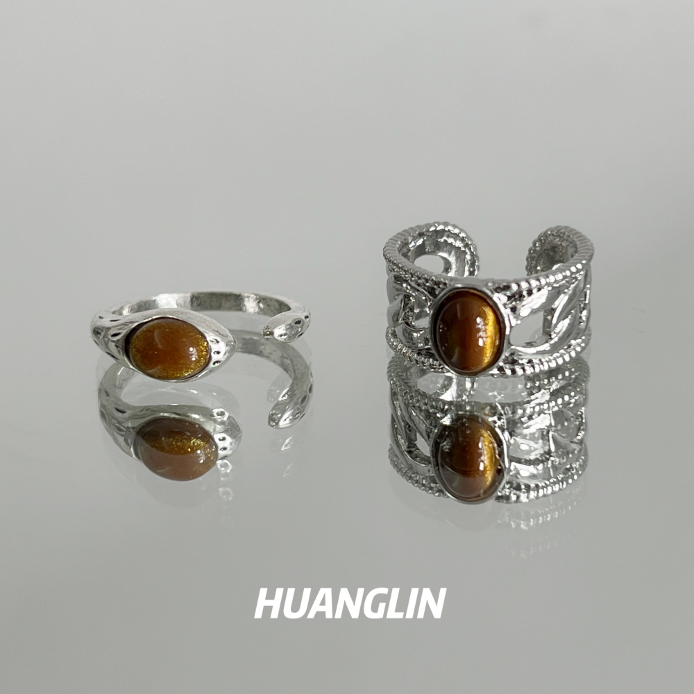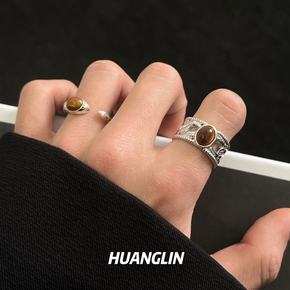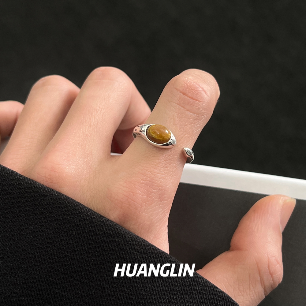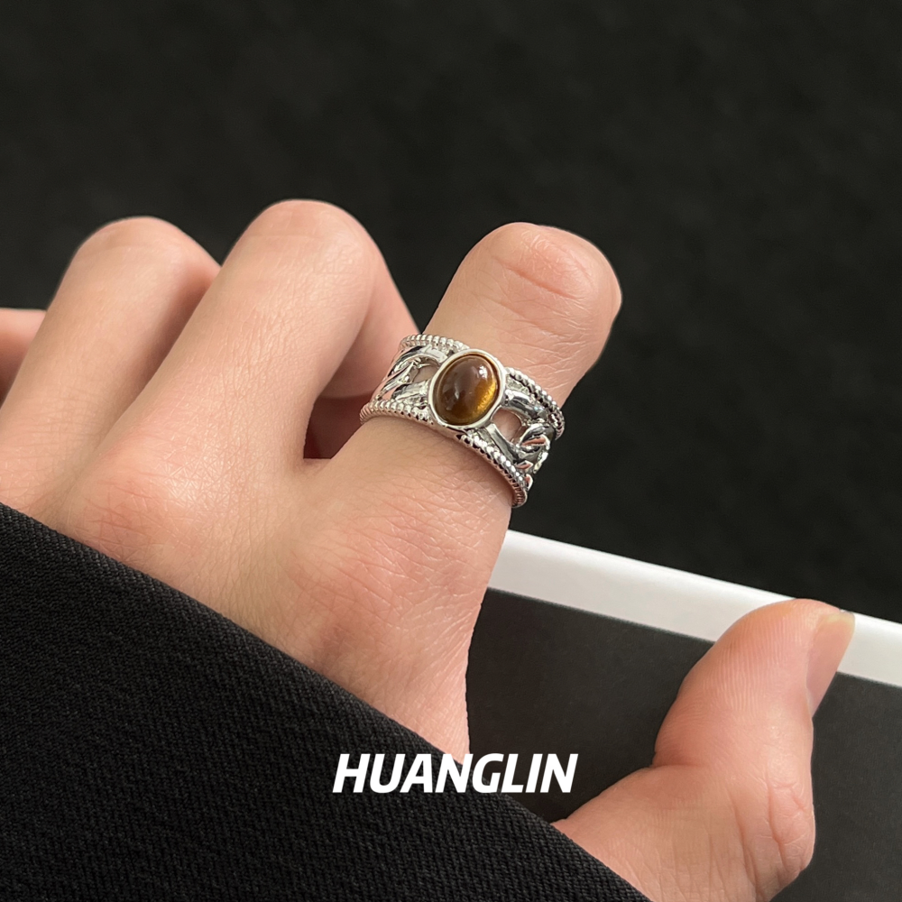 虎眼石戒指男女小众设计复古开口食指戒轻奢个性高级感轻奢指环潮