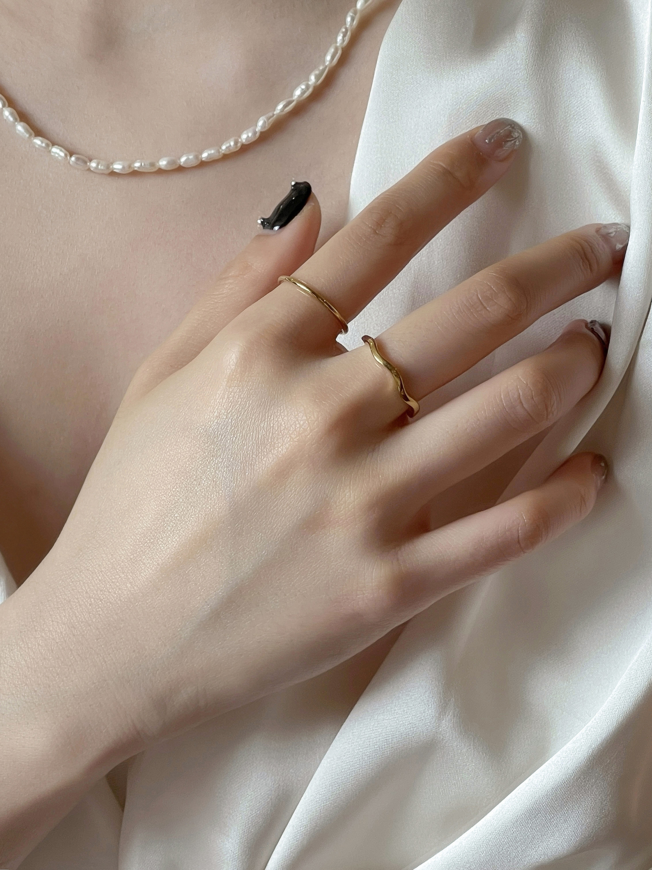 浮漾FLOAT不褪色百搭简约叠戴戒指女极简关节戒尾戒素圈套装指环